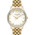 Женские наручные часы Lee Cooper LC07483.120 — это элегантная модель с утончённым дизайном. Корпус диаметром 35 мм выполнен из суперметалла с IP-покрытиемIP-покрытиеМетод ионного напыления. Демонстрирует повышенную устойчивость к истиранию, окислению и химическим веществам. Под воздействием высокого давления и температуры около 1500°C молекулы металла надёжно соединяются с частицами корпуса часов., что придаёт часам изысканный вид. Серебристый циферблат украшен изящными стрелками и вставками из циркония в виде меток, обеспечивая удобное считывание времени. Циферблат защищён минеральным стекломМинеральное стеклоМинеральное стекло представляет собой искусственно выращенный минерал кварца. Такое стекло отличается особой устойчивостью к повреждениям и царапинам. Уступает по некоторым качествам сапфировому стеклу., устойчивым к царапинам. Часы работают на кварцевом механизме, обеспечивая точность хода. Браслет из нержавеющей стали с раскладной застёжкойРаскладная застёжкаТакой тип застёжки используется только на браслетах из металла. Она никогда не раскрывается полностью, происходит разделение на 2 и более частей. Раскладывающая застёжка снизит вероятность потери часов к минимуму. гарантирует комфортное ношение и надёжную фиксацию на запястье. Водозащита 30 метров защищает часы от случайных брызг и дождя, делая их подходящими для повседневного использования. БезельБезельВнешний ободок, закрепляющий стекло. В спортивных часах так называется поворотное кольцо с делениями на циферблате, выполняет роль таймера – замеряет отрезки времени на шкале. Неподвижный безель – элемент декора. Однонаправленно вращающийся безель на дайверских часах позволяет фиксировать моменты погружения и выныривания на поверхность. инкрустирован кристаллами. Стрелки покрыты люминесцентным покрытиемЛюминесцентное покрытиеПозволяет считывать показания времени в темноте. Производители наносят на стрелки, часовые индексы, безель или поверхность циферблата светонакопительный состав, дающий холодное свечение., обеспечивая удобное считывание показаний в условиях недостаточного освещения.