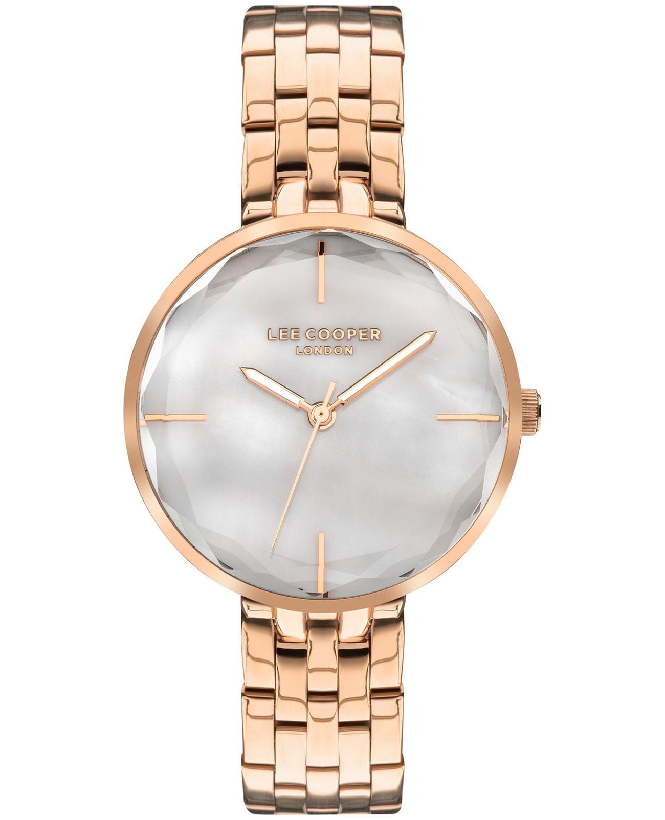 Женские часы Lee Cooper LC07502.420 — это стильное сочетание элегантности и современного дизайна. Круглый корпус диаметром 34 мм выполнен из суперметалла с IP-покрытиемIP-покрытиеМетод ионного напыления. Демонстрирует повышенную устойчивость к истиранию, окислению и химическим веществам. Под воздействием высокого давления и температуры около 1500°C молекулы металла надёжно соединяются с частицами корпуса часов. цвета розового золота, что придает модели особый блеск. Серый циферблат защищен минеральным стекломМинеральное стеклоМинеральное стекло представляет собой искусственно выращенный минерал кварца. Такое стекло отличается особой устойчивостью к повреждениям и царапинам. Уступает по некоторым качествам сапфировому стеклу., обеспечивающим устойчивость к царапинам. Метки в виде штрихов. Часы оснащены надежным кварцевым механизмом, а металлический браслет с IP-покрытиемIP-покрытиеМетод ионного напыления. Демонстрирует повышенную устойчивость к истиранию, окислению и химическим веществам. Под воздействием высокого давления и температуры около 1500°C молекулы металла надёжно соединяются с частицами корпуса часов. на раскладной застёжкеРаскладная застёжкаТакой тип застёжки используется только на браслетах из металла. Она никогда не раскрывается полностью, происходит разделение на 2 и более частей. Раскладывающая застёжка снизит вероятность потери часов к минимуму. гарантирует комфортную посадку на запястье. Стрелки с люминесцентным покрытиемЛюминесцентное покрытиеПозволяет считывать показания времени в темноте. Производители наносят на стрелки, часовые индексы, безель или поверхность циферблата светонакопительный состав, дающий холодное свечение. позволяют легко считывать время даже в условиях недостаточного освещения. Водозащита 30 метров защищает модель от случайных брызг и дождя. Lee Cooper  — отличный выбор для тех, кто ценит утонченность и качество.