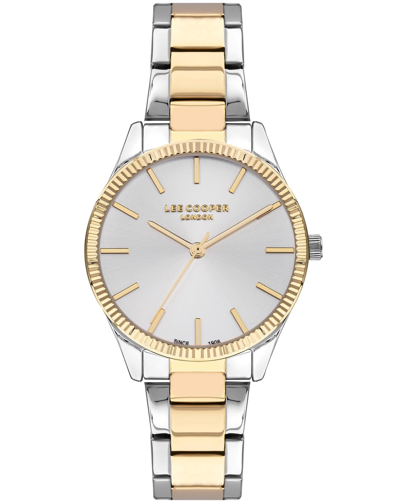 Женские часы Lee Cooper LC07543.230 — это стильное сочетание элегантности и современного дизайна. Круглый корпус диаметром 34 мм выполнен из суперметалла серебристого цвета, что придает модели особый блеск. Циферблат защищен минеральным стекломМинеральное стеклоМинеральное стекло представляет собой искусственно выращенный минерал кварца. Такое стекло отличается особой устойчивостью к повреждениям и царапинам. Уступает по некоторым качествам сапфировому стеклу., обеспечивающим устойчивость к царапинам. Неподвижный рифленый безельБезельВнешний ободок, закрепляющий стекло. В спортивных часах так называется поворотное кольцо с делениями на циферблате, выполняет роль таймера – замеряет отрезки времени на шкале. Неподвижный безель – элемент декора. Однонаправленно вращающийся безель на дайверских часах позволяет фиксировать моменты погружения и выныривания на поверхность. с IP-покрытиемIP-покрытиеМетод ионного напыления. Демонстрирует повышенную устойчивость к истиранию, окислению и химическим веществам. Под воздействием высокого давления и температуры около 1500°C молекулы металла надёжно соединяются с частицами корпуса часов. золотистого цвета. Метки в виде штрихов. Часы оснащены надежным кварцевым механизмом, а металлический браслет с частичным IP-покрытиемIP-покрытиеМетод ионного напыления. Демонстрирует повышенную устойчивость к истиранию, окислению и химическим веществам. Под воздействием высокого давления и температуры около 1500°C молекулы металла надёжно соединяются с частицами корпуса часов. на раскладной застёжкеРаскладная застёжкаТакой тип застёжки используется только на браслетах из металла. Она никогда не раскрывается полностью, происходит разделение на 2 и более частей. Раскладывающая застёжка снизит вероятность потери часов к минимуму. гарантирует комфортную посадку на запястье. Водозащита 30 метров защищает модель от случайных брызг и дождя. Lee Cooper — отличный выбор для тех, кто ценит утонченность и качество.