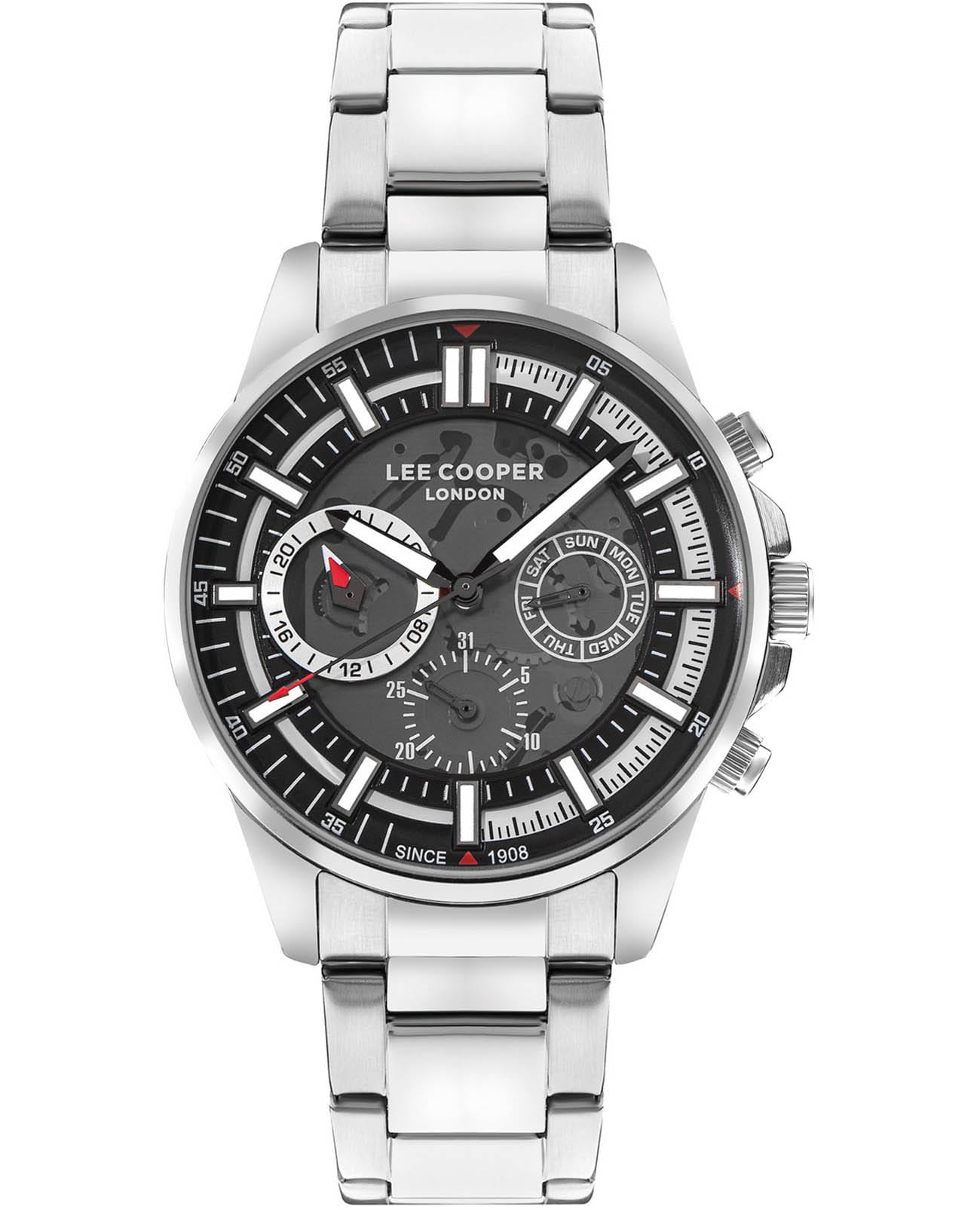 Lee Cooper LC07817.350 — элегантная модель с функциональными возможностями для повседневного использования. Корпус из суперметалла и диаметром 45 мм придаёт часам классический и современный вид. Циферблат защищён минеральным стекломМинеральное стеклоМинеральное стекло представляет собой искусственно выращенный минерал кварца. Такое стекло отличается особой устойчивостью к повреждениям и царапинам. Уступает по некоторым качествам сапфировому стеклу., устойчивым к царапинам, хорошо может выдержать небольшие удары и падения. Стильный циферблат оформлен изысканными индексами и дополнен окошками даты, дня недели и 24-часового индикатора, а также аккуратными метками и стрелками с люминесцентным покрытиемЛюминесцентное покрытиеПозволяет считывать показания времени в темноте. Производители наносят на стрелки, часовые индексы, безель или поверхность циферблата светонакопительный состав, дающий холодное свечение., что гарантирует читаемость даже в условиях недостаточного освещения. Часы работают на кварцевом механизме, обеспечивающем точность хода. Стальной браслет на раскладной застёжкеРаскладная застёжкаТакой тип застёжки используется только на браслетах из металла. Она никогда не раскрывается полностью, происходит разделение на 2 и более частей. Раскладывающая застёжка снизит вероятность потери часов к минимуму. гарантирует удобную посадку и надёжную фиксацию на запястье. Водозащита 50 метров защищает часы от брызг и дождя, делая их подходящими для повседневного использования.