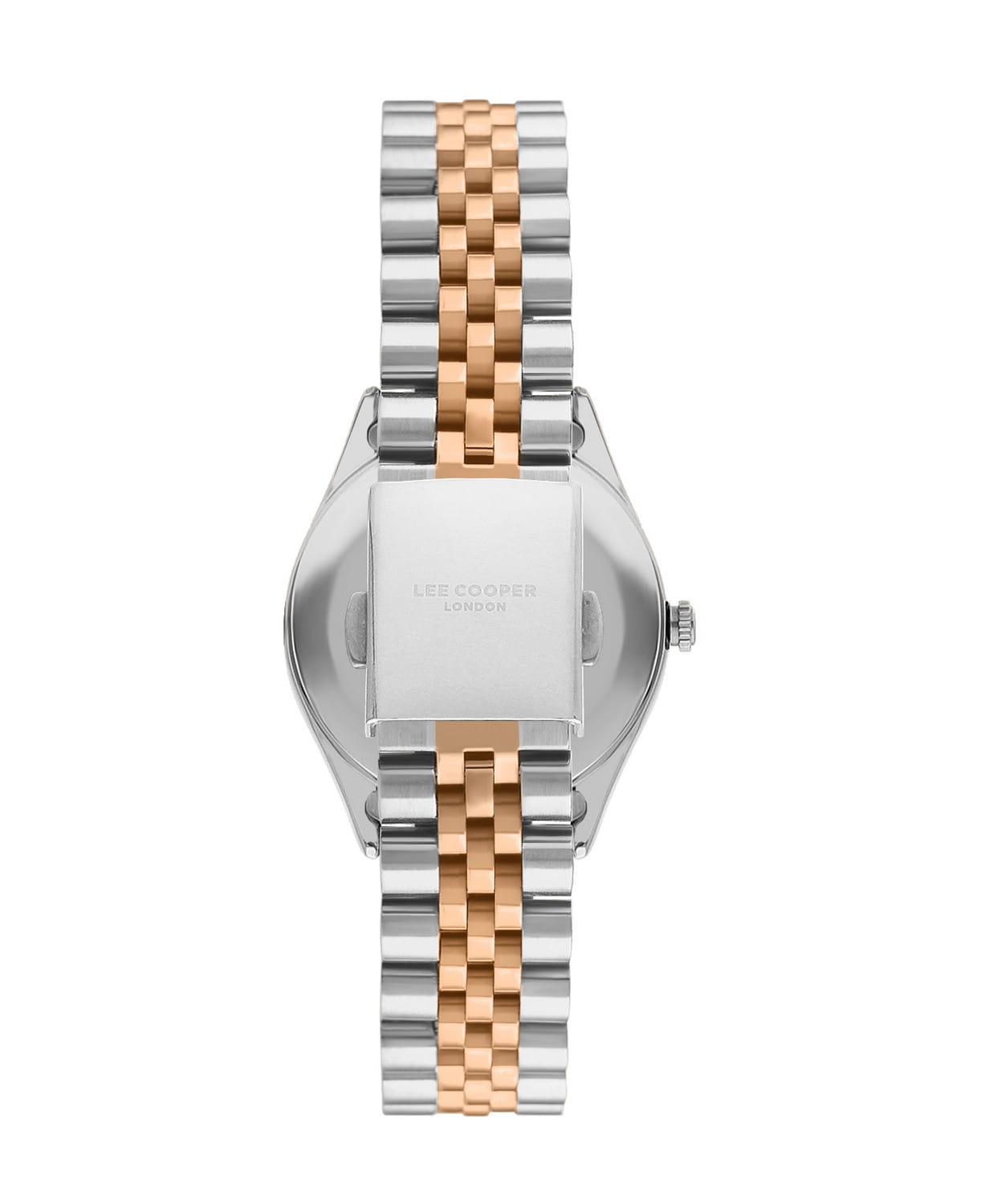 Женские часы Lee Cooper LC07818.520 выполнены в классическом стиле и сочетают строгий дизайн с надёжным механизмом. Модель оснащена кварцевым механизмом, обеспечивающим точность хода и минимальное обслуживание. Корпус круглой формы имеет размер 33 мм, изготовлен из суперметалла с изысканным неподвижным безелемБезельВнешний ободок, закрепляющий стекло. В спортивных часах так называется поворотное кольцо с делениями на циферблате, выполняет роль таймера – замеряет отрезки времени на шкале. Неподвижный безель – элемент декора. Однонаправленно вращающийся безель на дайверских часах позволяет фиксировать моменты погружения и выныривания на поверхность. с IP-покрытиемIP-покрытиеМетод ионного напыления. Демонстрирует повышенную устойчивость к истиранию, окислению и химическим веществам. Под воздействием высокого давления и температуры около 1500°C молекулы металла надёжно соединяются с частицами корпуса часов., гарантирует комфорт при ношении. Циферблат дополнен изящными вставками из циркона для чёткого отсчёта времени. Защиту циферблата обеспечивает минеральное стеклоМинеральное стеклоМинеральное стекло представляет собой искусственно выращенный минерал кварца. Такое стекло отличается особой устойчивостью к повреждениям и царапинам. Уступает по некоторым качествам сапфировому стеклу., устойчивое к мелким механическим повреждениям. Стальной браслет с частичным IP-покрытиемIP-покрытиеМетод ионного напыления. Демонстрирует повышенную устойчивость к истиранию, окислению и химическим веществам. Под воздействием высокого давления и температуры около 1500°C молекулы металла надёжно соединяются с частицами корпуса часов. на раскладной застёжкеРаскладная застёжкаТакой тип застёжки используется только на браслетах из металла. Она никогда не раскрывается полностью, происходит разделение на 2 и более частей. Раскладывающая застёжка снизит вероятность потери часов к минимуму. гарантирует удобную посадку и надёжную фиксацию на запястье. Водозащита 30WR позволяет использовать часы в повседневных условиях без риска повреждения от случайных брызг воды. Это сочетание классического дизайна, прочности материалов и качества исполнения для уверенных в себе женщин.