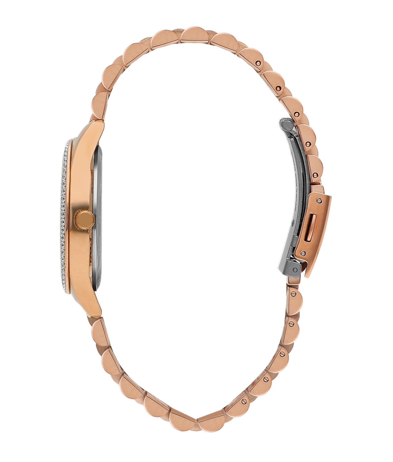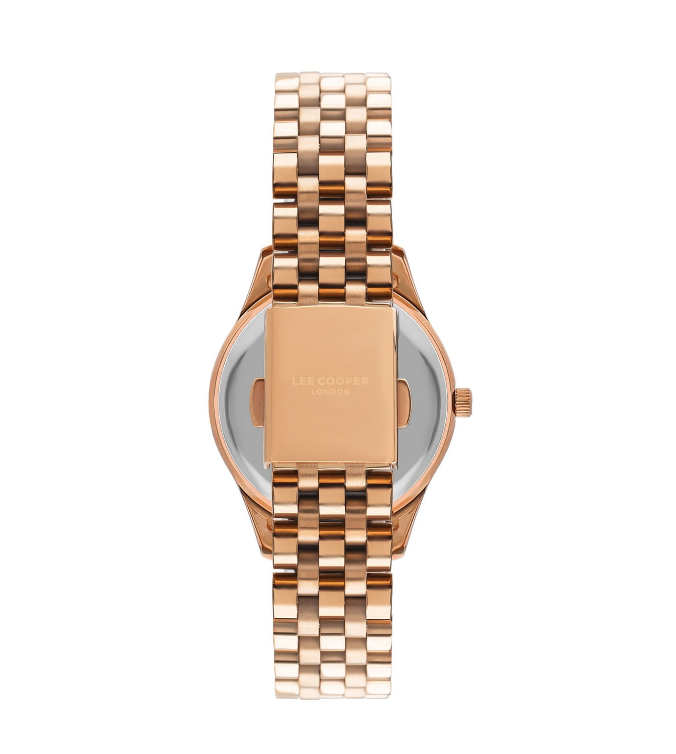 Женские часы Lee Cooper LC07826.420 выполнены в классическом стиле и сочетают строгий дизайн с надёжным механизмом. Модель оснащена кварцевым механизмом, обеспечивающим точность хода и минимальное обслуживание. Корпус круглой формы имеет размер 35 мм, изготовлен из суперметалла с IP-покрытиемIP-покрытиеМетод ионного напыления. Демонстрирует повышенную устойчивость к истиранию, окислению и химическим веществам. Под воздействием высокого давления и температуры около 1500°C молекулы металла надёжно соединяются с частицами корпуса часов. и с изысканным неподвижным безелемБезельВнешний ободок, закрепляющий стекло. В спортивных часах так называется поворотное кольцо с делениями на циферблате, выполняет роль таймера – замеряет отрезки времени на шкале. Неподвижный безель – элемент декора. Однонаправленно вращающийся безель на дайверских часах позволяет фиксировать моменты погружения и выныривания на поверхность. с вставками из циркона, гарантирует комфорт при ношении. Циферблат дополнен изящными вставками из циркона для чёткого отсчёта времени. Защиту циферблата обеспечивает минеральное стеклоМинеральное стеклоМинеральное стекло представляет собой искусственно выращенный минерал кварца. Такое стекло отличается особой устойчивостью к повреждениям и царапинам. Уступает по некоторым качествам сапфировому стеклу., устойчивое к мелким механическим повреждениям. Стрелки с люминесцентным покрытиемЛюминесцентное покрытиеПозволяет считывать показания времени в темноте. Производители наносят на стрелки, часовые индексы, безель или поверхность циферблата светонакопительный состав, дающий холодное свечение.. Стальной браслет с IP-покрытиемIP-покрытиеМетод ионного напыления. Демонстрирует повышенную устойчивость к истиранию, окислению и химическим веществам. Под воздействием высокого давления и температуры около 1500°C молекулы металла надёжно соединяются с частицами корпуса часов. на раскладной застёжкеРаскладная застёжкаТакой тип застёжки используется только на браслетах из металла. Она никогда не раскрывается полностью, происходит разделение на 2 и более частей. Раскладывающая застёжка снизит вероятность потери часов к минимуму. гарантирует удобную посадку и надёжную фиксацию на запястье. Водозащита 30WR позволяет использовать часы в повседневных условиях без риска повреждения от случайных брызг воды. Это сочетание классического дизайна, прочности материалов и качества исполнения для уверенных в себе женщин.