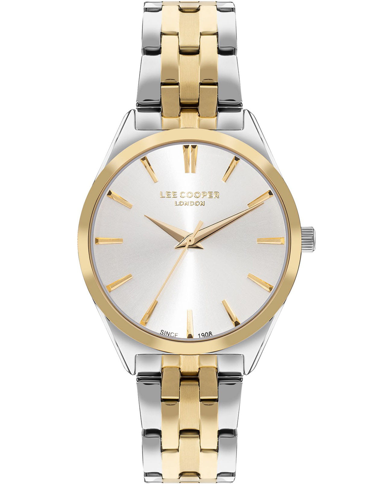 Женские часы Lee Cooper LC07833.230 — это стильное сочетание элегантности и современного дизайна. Изысканный круглый корпус диаметром 34 мм выполнен из суперметалла с неподвижным безелемБезельВнешний ободок, закрепляющий стекло. В спортивных часах так называется поворотное кольцо с делениями на циферблате, выполняет роль таймера – замеряет отрезки времени на шкале. Неподвижный безель – элемент декора. Однонаправленно вращающийся безель на дайверских часах позволяет фиксировать моменты погружения и выныривания на поверхность. с IP-покрытиемIP-покрытиеМетод ионного напыления. Демонстрирует повышенную устойчивость к истиранию, окислению и химическим веществам. Под воздействием высокого давления и температуры около 1500°C молекулы металла надёжно соединяются с частицами корпуса часов. золотого цвета, что придает модели особый блеск. Серебристый циферблат защищен минеральным стекломМинеральное стеклоМинеральное стекло представляет собой искусственно выращенный минерал кварца. Такое стекло отличается особой устойчивостью к повреждениям и царапинам. Уступает по некоторым качествам сапфировому стеклу., обеспечивающим устойчивость к царапинам. Метки в виде лаконичных штрихов. Часы оснащены надежным кварцевым механизмом, а изящный стальной браслет с частичным IP-покрытиемIP-покрытиеМетод ионного напыления. Демонстрирует повышенную устойчивость к истиранию, окислению и химическим веществам. Под воздействием высокого давления и температуры около 1500°C молекулы металла надёжно соединяются с частицами корпуса часов. на раскладной застёжкеРаскладная застёжкаТакой тип застёжки используется только на браслетах из металла. Она никогда не раскрывается полностью, происходит разделение на 2 и более частей. Раскладывающая застёжка снизит вероятность потери часов к минимуму. гарантирует комфортную посадку на запястье. Водозащита 30 метров защищает модель от случайных брызг и дождя. Lee Cooper — отличный выбор для тех, кто ценит утонченность и качество.