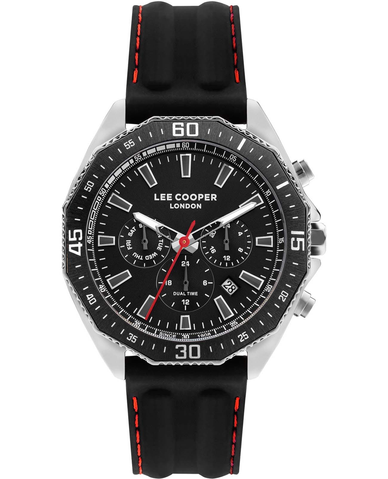 Мужские часы Lee Cooper LC07848.351 выполнены в классическом стиле и сочетают строгий дизайн с надёжным механизмом. Модель оснащена кварцевым механизмом, обеспечивающим точность хода и минимальное обслуживание. Корпус имеет размер 45 мм, изготовлен из суперметалла с поворотным безелемБезельВнешний ободок, закрепляющий стекло. В спортивных часах так называется поворотное кольцо с делениями на циферблате, выполняет роль таймера – замеряет отрезки времени на шкале. Неподвижный безель – элемент декора. Однонаправленно вращающийся безель на дайверских часах позволяет фиксировать моменты погружения и выныривания на поверхность. с IP-покрытиемIP-покрытиеМетод ионного напыления. Демонстрирует повышенную устойчивость к истиранию, окислению и химическим веществам. Под воздействием высокого давления и температуры около 1500°C молекулы металла надёжно соединяются с частицами корпуса часов.. Циферблат черного цвета дополнен индексами для чёткого отсчёта времени, а также функциями отображения даты, дня недели, 24-часового индикатора и второго часового поясаВторой часовой поясФункция, позволяющая отображать время двух часовых поясов одновременно.. Защиту циферблата обеспечивает минеральное стеклоМинеральное стеклоМинеральное стекло представляет собой искусственно выращенный минерал кварца. Такое стекло отличается особой устойчивостью к повреждениям и царапинам. Уступает по некоторым качествам сапфировому стеклу., устойчивое к мелким механическим повреждениям. Циферблат украшен стрелками и метками с люминесцентным покрытиемЛюминесцентное покрытиеПозволяет считывать показания времени в темноте. Производители наносят на стрелки, часовые индексы, безель или поверхность циферблата светонакопительный состав, дающий холодное свечение., гармонично дополняющим общий дизайн модели. Ремень из каучука оснащен стандартной застежкой, обеспечивающим комфортное и безопасное ношение. Водозащита 5 АТМ позволяет использовать часы в повседневных условиях без риска повреждения от случайных брызг воды. Это сочетание классического дизайна, прочности материалов и качества исполнения для уверенных в себе мужчин.