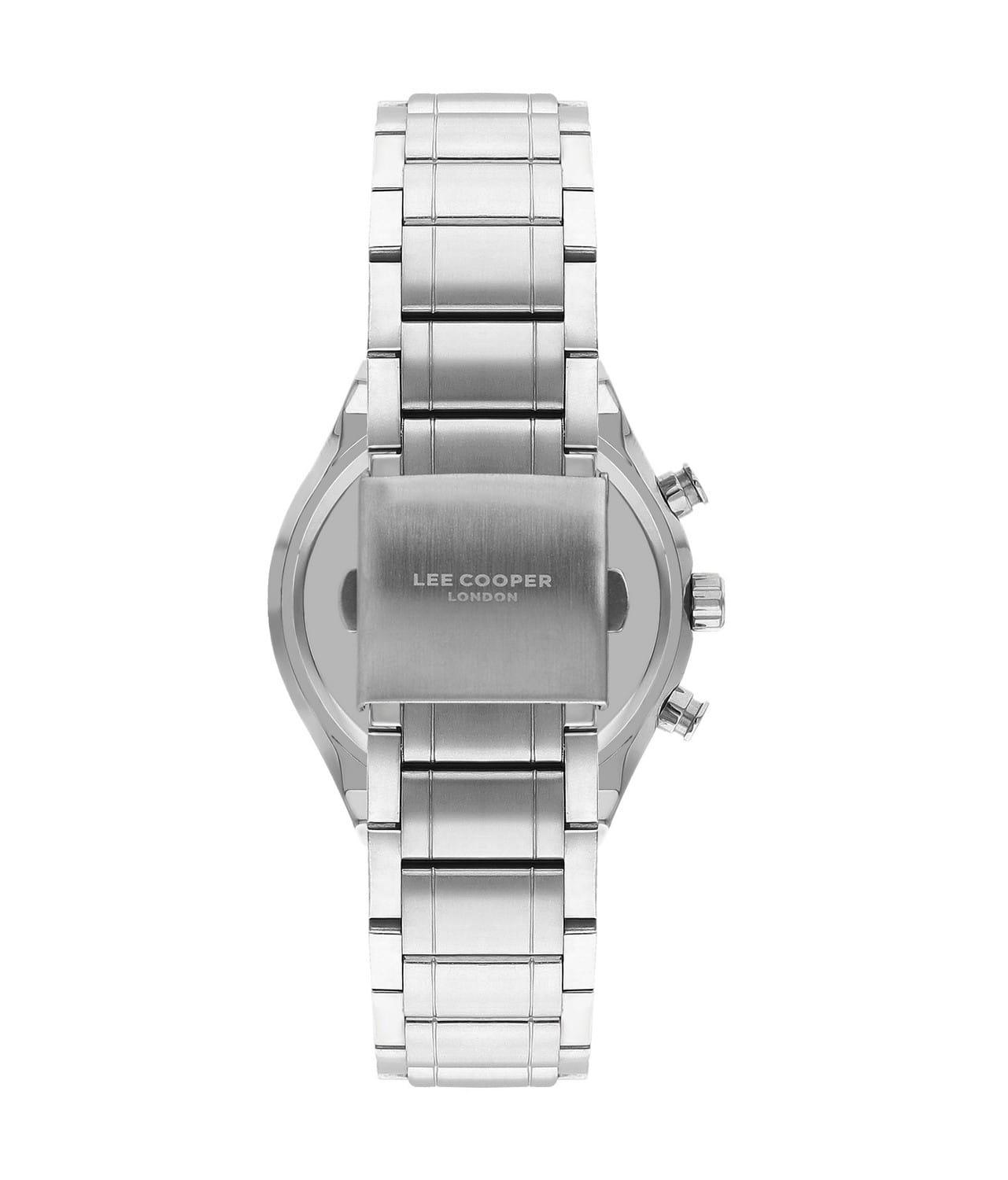 Мужские часы Lee Cooper LC07853.080 — это стильный аксессуар, сочетающий в себе классический дизайн и современные функции. Эти часы идеально подойдут для тех, кто ценит элегантность и практичность в повседневной жизни. Круглый корпус диаметром 43 мм выполнен из суперметалла серебристого цвета. Циферблат защищен минеральным стекломМинеральное стеклоМинеральное стекло представляет собой искусственно выращенный минерал кварца. Такое стекло отличается особой устойчивостью к повреждениям и царапинам. Уступает по некоторым качествам сапфировому стеклу., обеспечивающим устойчивость к царапинам. Часы оснащены надежным кварцевым механизмом, а элегантный стальной браслет на раскладной застёжкеРаскладная застёжкаТакой тип застёжки используется только на браслетах из металла. Она никогда не раскрывается полностью, происходит разделение на 2 и более частей. Раскладывающая застёжка снизит вероятность потери часов к минимуму. гарантирует комфортную посадку на запястье. Часы с люминесцентным покрытиемЛюминесцентное покрытиеПозволяет считывать показания времени в темноте. Производители наносят на стрелки, часовые индексы, безель или поверхность циферблата светонакопительный состав, дающий холодное свечение. позволяют легко считывать время даже в условиях недостаточного освещения. Окошко даты находится в положении 4  часов. Водозащита 50 метров позволит защитить корпус от случайных брызг или капель дождя. Мультифункциональная модель с 24-х часовым индикатором и хронографомХронографФункция позволяет измерять отрезки времени с особой точностью: часы, минуты, секунды. Верным признаком хронографа является наличие на циферблате 3 дополнительных окошек-счётчиков.. Lee Cooper  — отличный выбор для тех, кто ценит утонченность и качество.