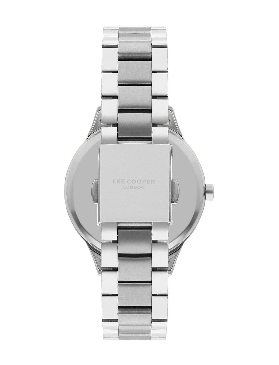 Женские часы Lee Cooper LC07865.380 — это стильное сочетание элегантности и современного дизайна. Круглый корпус диаметром 38 мм выполнен из суперметалла серебристого цвета, придающий модели особый блеск. Розовый циферблат защищен минеральным стекломМинеральное стеклоМинеральное стекло представляет собой искусственно выращенный минерал кварца. Такое стекло отличается особой устойчивостью к повреждениям и царапинам. Уступает по некоторым качествам сапфировому стеклу., обеспечивающим устойчивость к царапинам. Часы оснащены надежным кварцевым механизмом, а стальной браслет на раскладной застёжкеРаскладная застёжкаТакой тип застёжки используется только на браслетах из металла. Она никогда не раскрывается полностью, происходит разделение на 2 и более частей. Раскладывающая застёжка снизит вероятность потери часов к минимуму. гарантирует комфортную посадку на запястье. Мультифункциональная модель с индикацией даты, дня недели, с дополнительным 24-х часовым индикатором. Водозащита 30 метров защищает модель от случайных брызг и дождя. Lee Cooper  — отличный выбор для тех, кто ценит утонченность и качество.