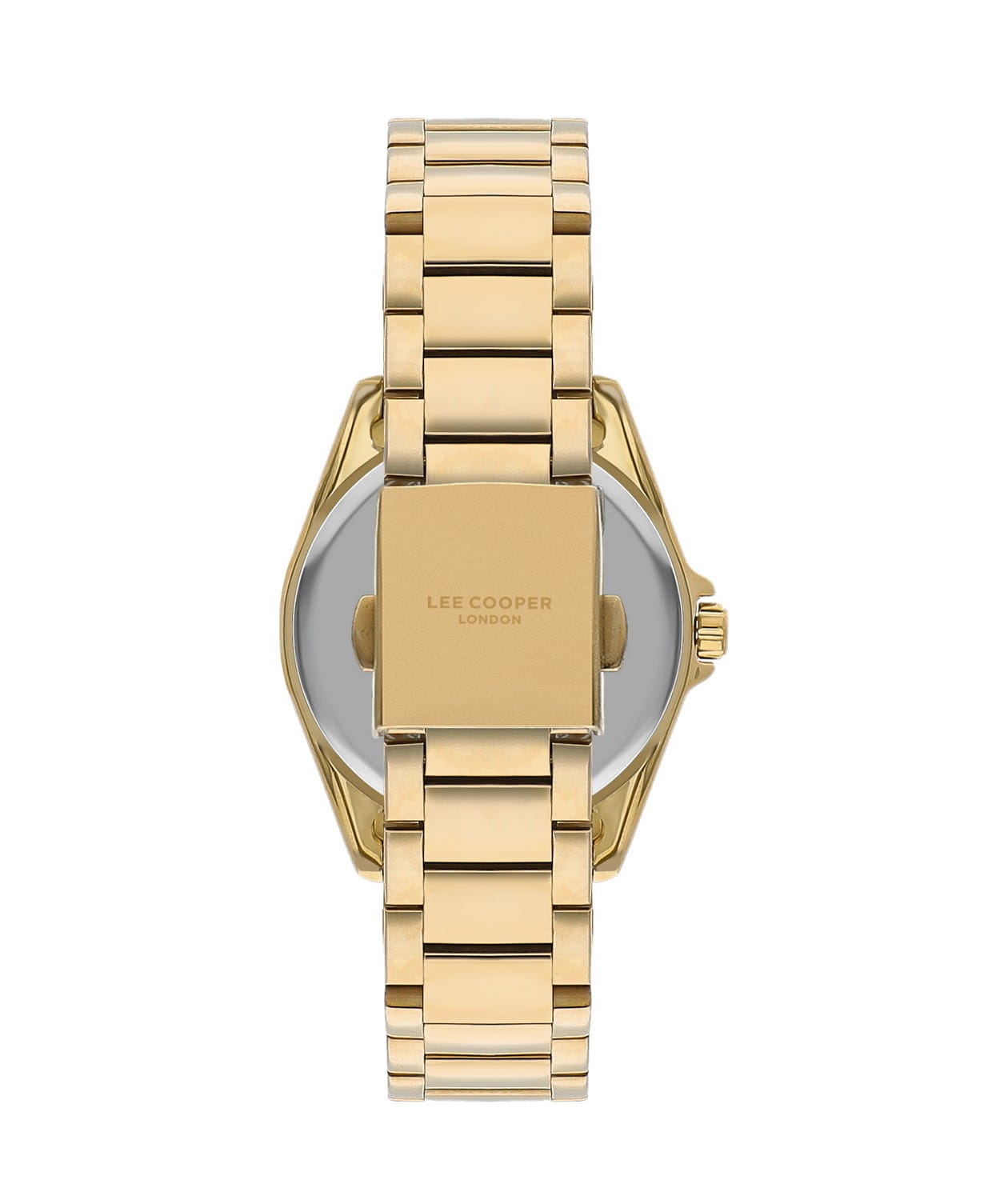 Женские часы Lee Cooper LC07873.150 выполнены в классическом стиле и сочетают строгий дизайн с надёжным механизмом. Модель оснащена кварцевым механизмом, обеспечивающим точность хода и минимальное обслуживание. Изящный корпус изготовлен из суперметалла с IP-покрытиемIP-покрытиеМетод ионного напыления. Демонстрирует повышенную устойчивость к истиранию, окислению и химическим веществам. Под воздействием высокого давления и температуры около 1500°C молекулы металла надёжно соединяются с частицами корпуса часов., гарантирует комфорт при ношении. Изысканный циферблат дополнен штрихами и римскими цифрами для чёткого отсчёта времени. Защиту циферблата обеспечивает минеральное стеклоМинеральное стеклоМинеральное стекло представляет собой искусственно выращенный минерал кварца. Такое стекло отличается особой устойчивостью к повреждениям и царапинам. Уступает по некоторым качествам сапфировому стеклу., устойчивое к мелким механическим повреждениям. Стальной браслет с IP-покрытиемIP-покрытиеМетод ионного напыления. Демонстрирует повышенную устойчивость к истиранию, окислению и химическим веществам. Под воздействием высокого давления и температуры около 1500°C молекулы металла надёжно соединяются с частицами корпуса часов. на раскладной застёжкеРаскладная застёжкаТакой тип застёжки используется только на браслетах из металла. Она никогда не раскрывается полностью, происходит разделение на 2 и более частей. Раскладывающая застёжка снизит вероятность потери часов к минимуму. гарантирует удобную посадку и надёжную фиксацию на запястье. Метки с люминесцентным покрытиемЛюминесцентное покрытиеПозволяет считывать показания времени в темноте. Производители наносят на стрелки, часовые индексы, безель или поверхность циферблата светонакопительный состав, дающий холодное свечение., обеспечивающим хорошую читаемость в темноте. Водозащита 30WR позволяет использовать часы в повседневных условиях без риска повреждения от случайных брызг воды. Это сочетание классического дизайна, прочности материалов и качества исполнения для уверенных в себе женщин.