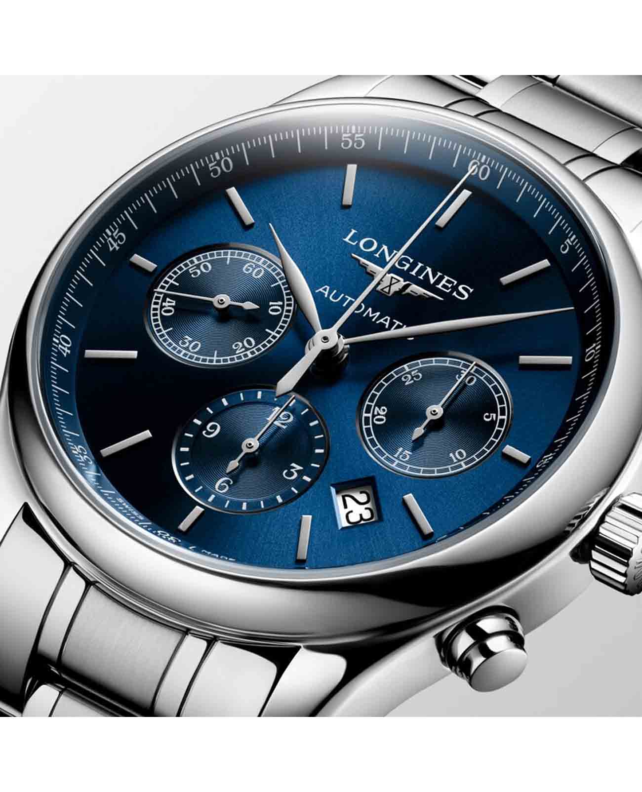 Мужские швейцарские механические часы-хронографХронографФункция позволяет измерять отрезки времени с особой точностью: часы, минуты, секунды. Верным признаком хронографа является наличие на циферблате 3 дополнительных окошек-счётчиков. Longines Master Collection L2.759.4.92.6 — это воплощение элегантности и технической изысканности. Их корпус, изготовленный из высококачественной нержавеющей стали, не только прочен, но и эстетически привлекателен. . Сапфировое стеклоСапфировое стеклоПрочный и надёжный материал из кристалла сапфира синтетического происхождения, характеризующийся особой твёрдостью и устойчивостью к царапинам и повреждениям., устойчивое к царапинам, обеспечивает высокую прозрачность, позволяя любоваться каждой деталью механизма.