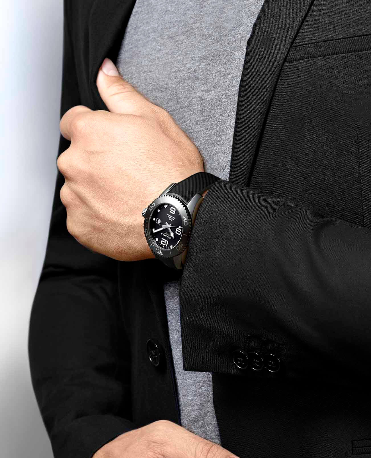 Longines HydroConquest L3.784.4.56.9 – это мужественный и мощный инструмент для настоящих любителей подводного мира и активного отдыха. Эти часы созданы для того, чтобы справляться со сложностями экстремального использования, оставаясь при этом элегантными и стильными. Корпус из нержавеющей стали, усиленный вращающимся стальным безелемБезельВнешний ободок, закрепляющий стекло. В спортивных часах так называется поворотное кольцо с делениями на циферблате, выполняет роль таймера – замеряет отрезки времени на шкале. Неподвижный безель – элемент декора. Однонаправленно вращающийся безель на дайверских часах позволяет фиксировать моменты погружения и выныривания на поверхность. с люминесцентным покрытиемЛюминесцентное покрытиеПозволяет считывать показания времени в темноте. Производители наносят на стрелки, часовые индексы, безель или поверхность циферблата светонакопительный состав, дающий холодное свечение. Superluminova, объединяет в себе функциональность и стиль.