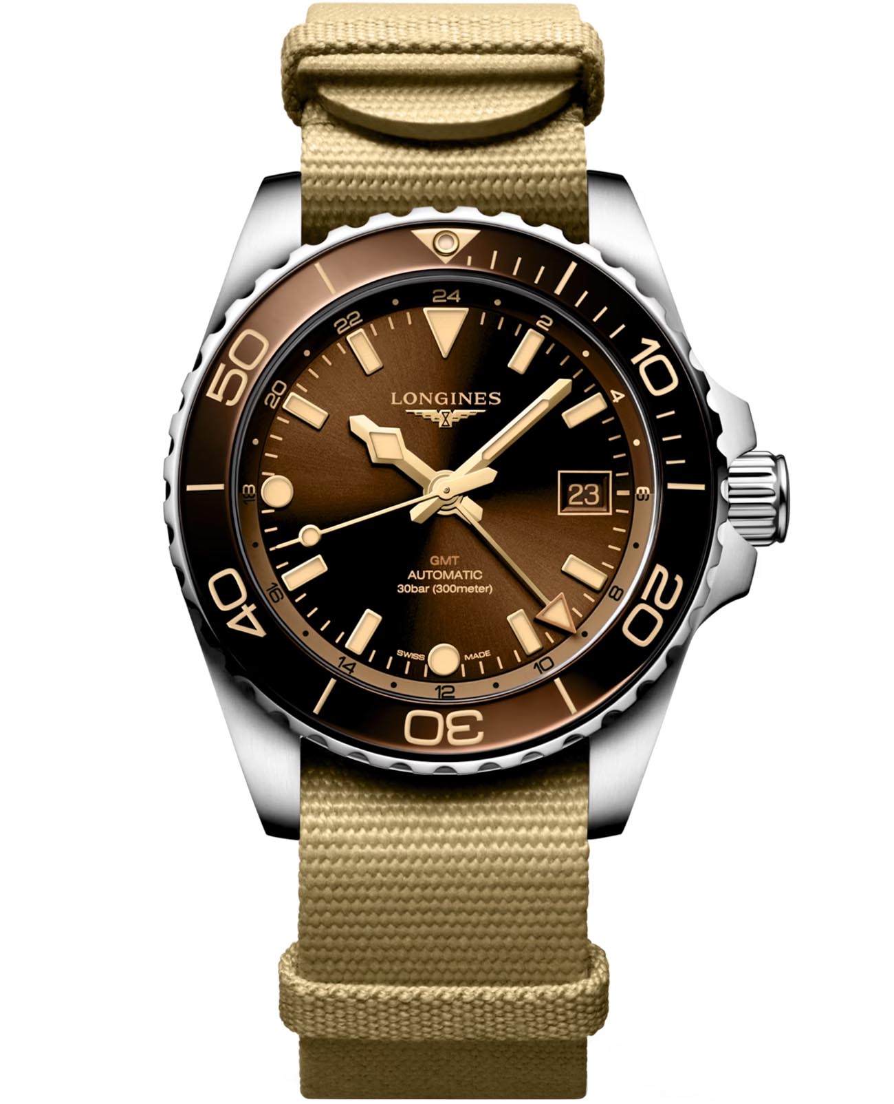 Мужские механические швейцарские часы с автоподзаводом Longines HydroConquest L3.790.4.66.2. Корпус часов изготовлен из нержавеющей стали. Тканевый ремешок на стандартной застёжке. Сапфировое стеклоСапфировое стеклоПрочный и надёжный материал из кристалла сапфира синтетического происхождения, характеризующийся особой твёрдостью и устойчивостью к царапинам и повреждениям. с антибликовым покрытием, устойчивое к мелким механическим повреждениям. Стрелки и метки с люминесцентным покрытиемЛюминесцентное покрытиеПозволяет считывать показания времени в темноте. Производители наносят на стрелки, часовые индексы, безель или поверхность циферблата светонакопительный состав, дающий холодное свечение.. Вращающийся стальной безельБезельВнешний ободок, закрепляющий стекло. В спортивных часах так называется поворотное кольцо с делениями на циферблате, выполняет роль таймера – замеряет отрезки времени на шкале. Неподвижный безель – элемент декора. Однонаправленно вращающийся безель на дайверских часах позволяет фиксировать моменты погружения и выныривания на поверхность. с люминесцентным покрытиемЛюминесцентное покрытиеПозволяет считывать показания времени в темноте. Производители наносят на стрелки, часовые индексы, безель или поверхность циферблата светонакопительный состав, дающий холодное свечение. Superluminova из нержавеющей стали и керамики, защищенный от царапин, никогда не изнашивается и не выцветает. Окошко даты находится в положении 3 часа. Класс водозащиты: 300 метров, позволит плавать, нырять и заниматься другими водными видами спорта. Текстильный ремешок на стандартной застежке.