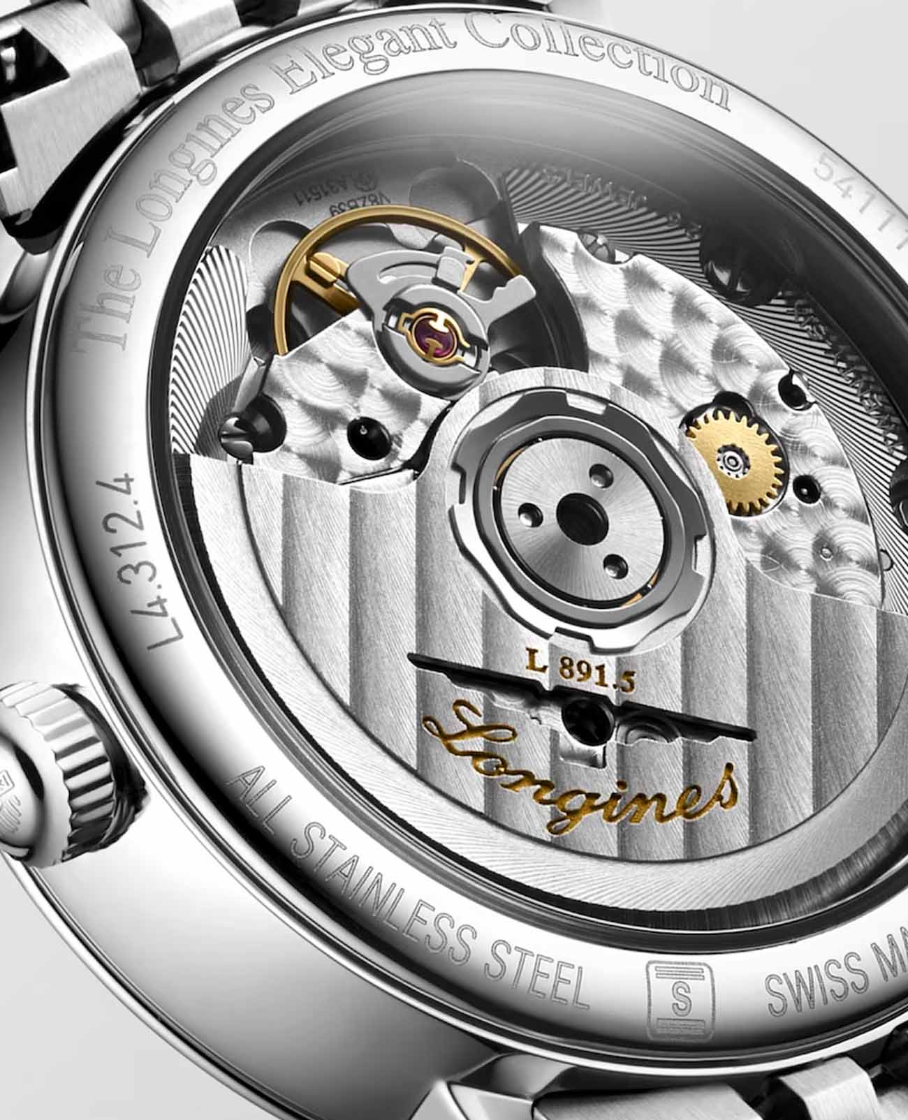 Женские швейцарские механические часы с автоподзаводом Longines Elegant Collection L4.312.4.87.6. Сапфировое стеклоСапфировое стеклоПрочный и надёжный материал из кристалла сапфира синтетического происхождения, характеризующийся особой твёрдостью и устойчивостью к царапинам и повреждениям. устойчивое к появлению царапин, обладающее высокой прозрачностью. Корпус часов изготовлен из нержавеющей стали. Циферблат с 13 бриллиантами группы Top Wesselton VS-SI общим весом 0.032 карата. Окошко даты в положении 3 часов. Малая секундная стрелка в положении 6 часов. Прозрачная задняя крышка. Класс водозащиты: 30 метров, позволит защитить корпус от случайных брызг или капель дождя. Стальной браслет на застёжке «бабочка» с кнопкамиЗастёжка "бабочка"Такой вид застёжки дополняется предохранителями, помогающими избежать случайного раскрытия браслета. Обладают изящным исполнением. .
