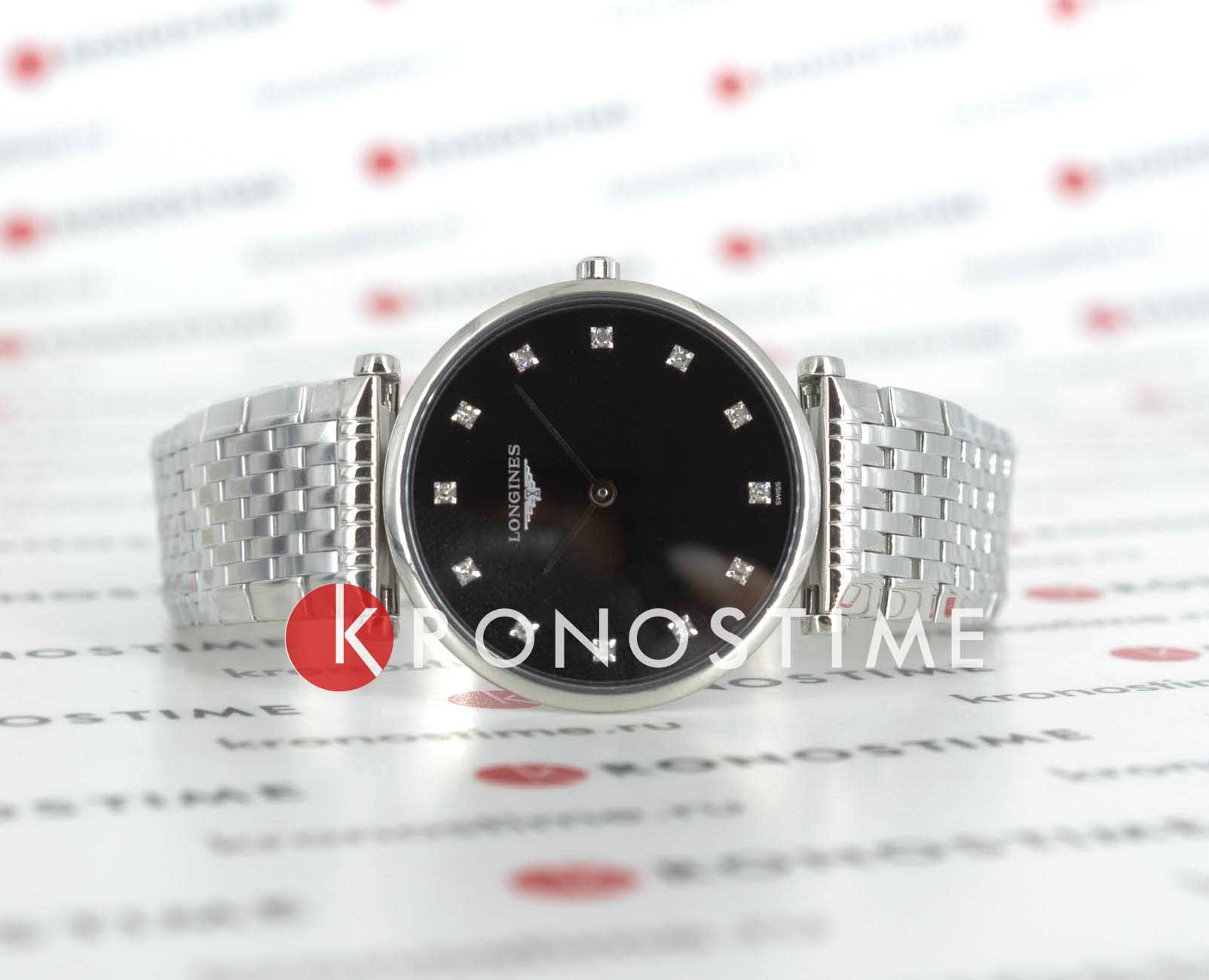 Часы Longines La Grande Classique de Longines  L4.512.4.58.6 представляют собой воплощение классической элегантности и утончённости, присущих бренду Longines. Корпус диаметром 29 мм выполнен из нержавеющей стали с водозащитой до 3 бар (30 метров). Чёрный лакированный циферблат украшен 12 бриллиантовыми часовыми метками общим весом 0,081 карата и серебристыми полированными стрелками. Циферблат защищён сапфировым стекломСапфировое стеклоПрочный и надёжный материал из кристалла сапфира синтетического происхождения, характеризующийся особой твёрдостью и устойчивостью к царапинам и повреждениям.. Модель оснащена кварцевым механизмом Longines L420, обеспечивающим точное отображение времени. Браслет из нержавеющей стали с застёжкой бабочкойЗастёжка "бабочка"Такой вид застёжки дополняется предохранителями, помогающими избежать случайного раскрытия браслета. Обладают изящным исполнением. подчёркивает утончённый стиль модели. Эти часы идеально подходят для тех, кто ценит классическую элегантность и надёжность.