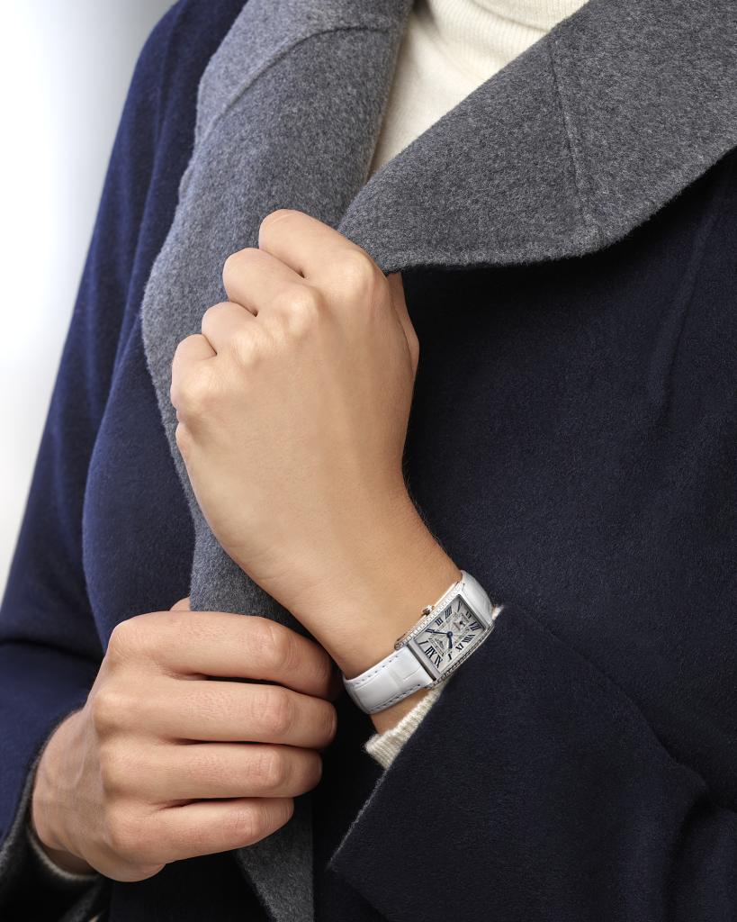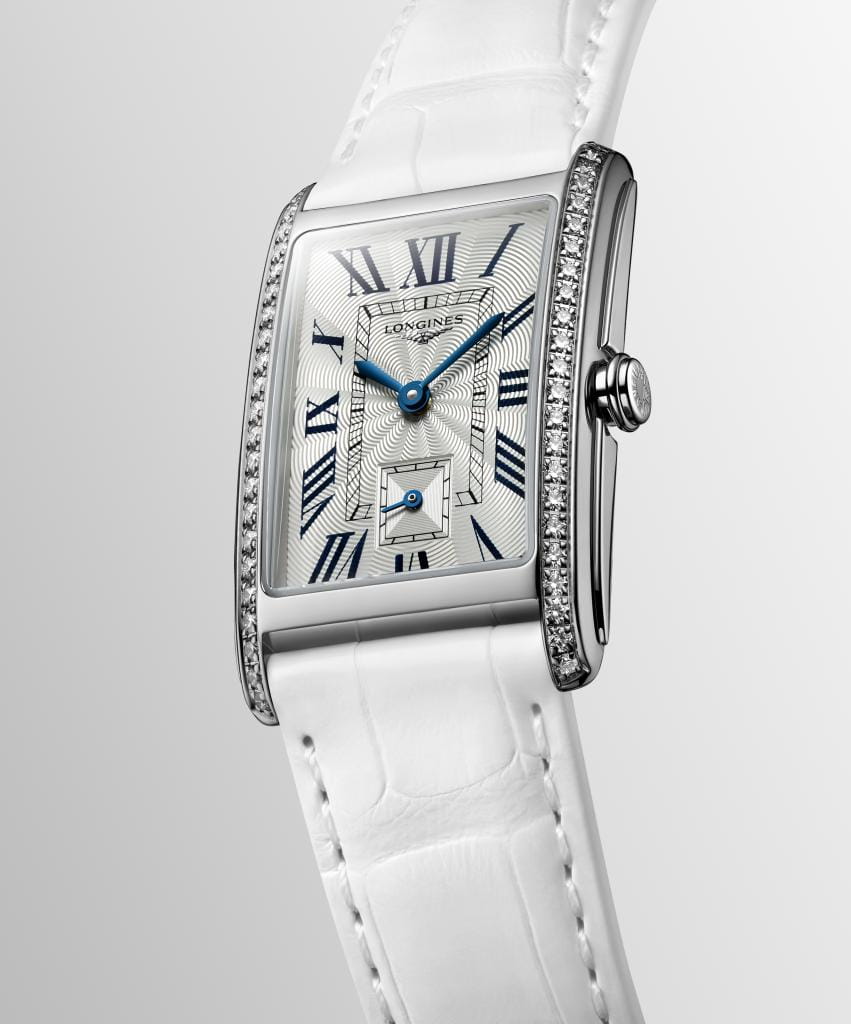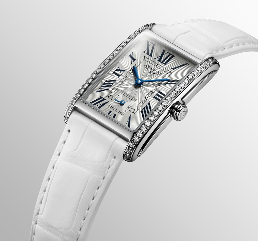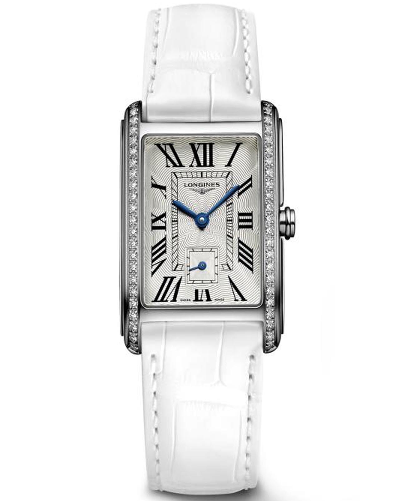 Женские швейцарские часы Longines DolceVita L5.512.0.71.2 , кварцевый механизм с высокой точностью. Сапфировое стеклоСапфировое стеклоПрочный и надёжный материал из кристалла сапфира синтетического происхождения, характеризующийся особой твёрдостью и устойчивостью к царапинам и повреждениям. устойчивое к появлению царапин, обладающее высокой прозрачностью. Корпус часов изготовлен из нержавеющей стали с 46 бриллиантами группы Top Wesselton IF-VVS общим весом 0.552 карата. Метки в виде римских цифр. Малая секундная стрелка в положении 6 часов. Класс водозащиты: 30 метров, позволит защитить корпус от случайных брызг или капель дождя. Ремешок из кожи аллигатора на стандартной застежке.