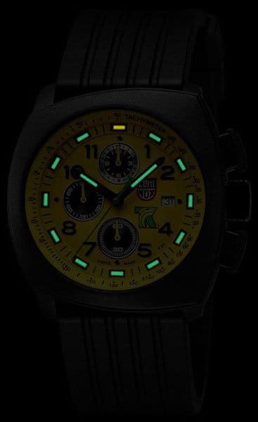 Яркий дизайн этого спортивного аксессуара подчеркнет ваше умение стильно выделяться. Tony Kanaan PC Carbon Chronograph 1100 Series. Эти часы выпущены в сотрудничестве компании Luminox и известного бразильского гонщика Тони Канаан. Часы-хронограф с секундомером и тахиметром. Завинчивающаяся задняя крышка. Материал корпуса: пластик, усиленный прессованный карбон; Материал браслета: силиконовый; Стекло: Сапфировое; Водозащита: 100 м. (WR 100).
