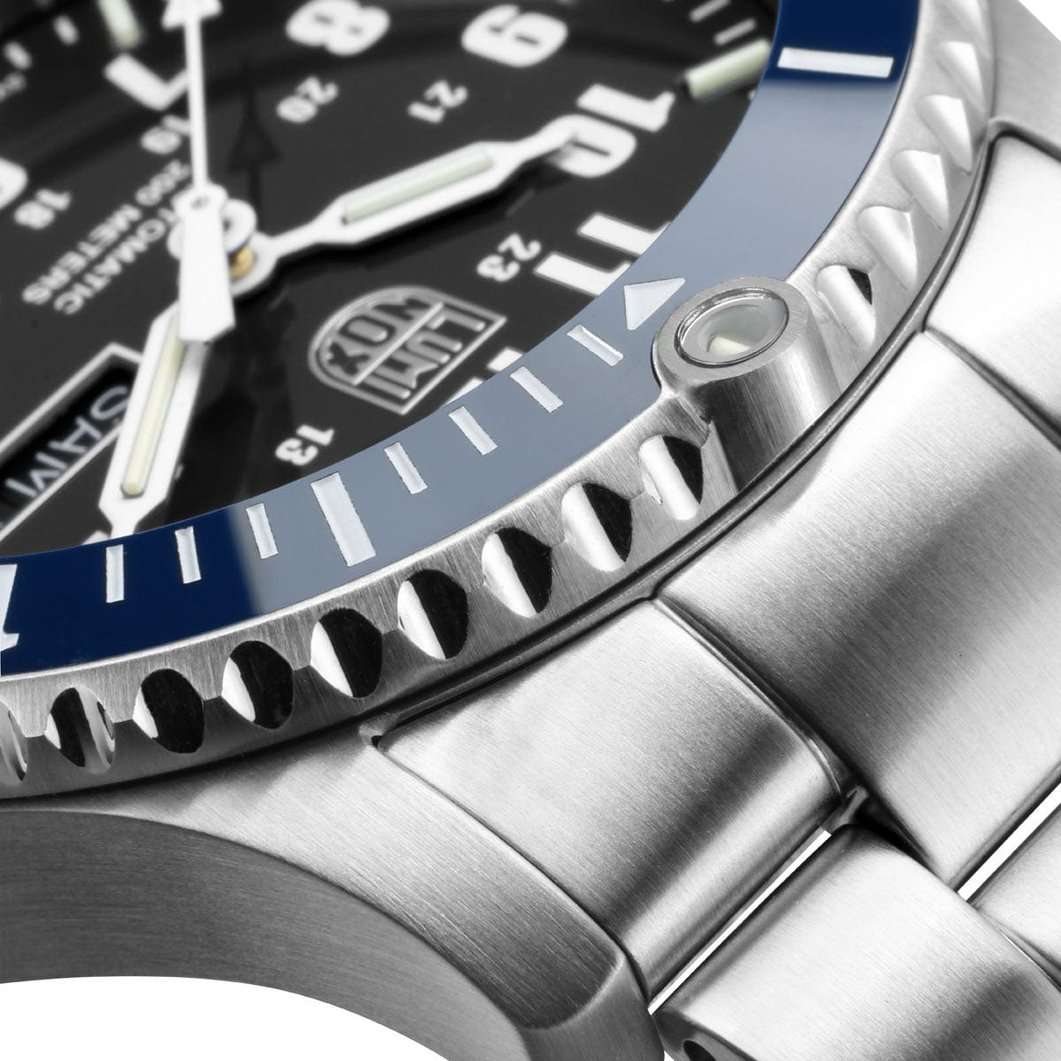 Часы Luminox Automatic Sport Timer XS.ZI24 — истинное воплощение швейцарского качества и современного стиля. Эти мужские часы, оснащённые механизмом с автоподзаводом, предлагают безупречную точность и надёжность, благодаря использованию калибра Sellita SW 220-1 с 26 камнями. Корпус выполнен из высококачественной стали 316L, что придаёт дополнительную прочность и устойчивость к износу. Чёрный циферблат защищён сапфировым стекломСапфировое стеклоПрочный и надёжный материал из кристалла сапфира синтетического происхождения, характеризующийся особой твёрдостью и устойчивостью к царапинам и повреждениям. с антибликовым покрытиемАнтибликовое покрытиеСлой оксида металла в 0,13-0,3 микрон, благодаря которому стекло часов не бликует и не отражает свет. Антибликовое покрытие уменьшает отражение света в 10 раз, обеспечивая отличную читаемость показателей циферблата., что позволяет с лёгкостью считывать показания даже при ярком освещении. Часы обладают функцией отображения даты и дня недели, расположенной в удобном окошке в позиции 3 часа. Вращающийся в одном направлении керамический синий безельБезельВнешний ободок, закрепляющий стекло. В спортивных часах так называется поворотное кольцо с делениями на циферблате, выполняет роль таймера – замеряет отрезки времени на шкале. Неподвижный безель – элемент декора. Однонаправленно вращающийся безель на дайверских часах позволяет фиксировать моменты погружения и выныривания на поверхность. обеспечивает дополнительную функциональность и стильный вид. Благодаря технологии LLTLLTLLT — это автономный механизм подсветки, основанный на использовании микроскопических газонаполненных элементов. Специальные герметичные капсулы из боросиликатного стекла, интегрированные в циферблат, генерируют свечение без необходимости подключения к внешним источникам энергии. Для их работы не требуется ни дополнительный свет, ни механическое воздействие (например, нажатие кнопки). Свечение возникает благодаря химическому процессу: реакция между тритием, заключенным в капсулах, и люминофорным покрытием создает стабильное автономное освещение. Технология обеспечивает энергетическую независимость и долговечность подсветки.-подсветки, эти часы гарантируют превосходную видимость в темноте на протяжении 25 лет. Завинчивающаяся заводная головка с защитой и прозрачная задняя крышка подчёркивают внимание к деталям и практичность дизайна. Стальной браслет, изготовленный из того же материала, что и корпус, оснащён раскладной застёжкойРаскладная застёжкаТакой тип застёжки используется только на браслетах из металла. Она никогда не раскрывается полностью, происходит разделение на 2 и более частей. Раскладывающая застёжка снизит вероятность потери часов к минимуму. с системой блокировки, обеспечивая надёжную фиксацию на запястье. Водозащита уровня 200WR позволяет использовать часы даже в условиях повышенной влажности. Габаритные размеры составляют 42 мм в диаметре, 13 мм в толщину, с шириной браслета 24 мм и весом 185 г, что делает их идеальным выбором для тех, кто ценит стиль и функциональность в одном аксессуаре.