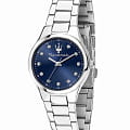 Maserati Attrazione R8853151506 — воплощение стиля и функциональности для современных женщин, ценящих качество и элегантность. Корпус диаметром 30 мм выполнен из нержавеющей стали, обеспечивая прочность и долговечность.Минеральное стеклоМинеральное стеклоМинеральное стекло представляет собой искусственно выращенный минерал кварца. Такое стекло отличается особой устойчивостью к повреждениям и царапинам. Уступает по некоторым качествам сапфировому стеклу. надежно защищает синий циферблат с изящными рисками, придавая часам утонченный вид. Благодаря водостойкости до 50 метров (50 АТМ), эти часы станут вашим надежным спутником в любых условиях, будь то деловая встреча или активный отдых. Завершающий штрих — стальной браслет с раскладной застёжкойРаскладная застёжкаТакой тип застёжки используется только на браслетах из металла. Она никогда не раскрывается полностью, происходит разделение на 2 и более частей. Раскладывающая застёжка снизит вероятность потери часов к минимуму., который подчеркивает общий стиль, обеспечивая комфорт и надежность в носке. Циферблат выполнен по технологии Sunray (солнечные лучи) и украшен фирменным логотипом «Maserati». Метки в виде точек, инкрустированные кристаллами.