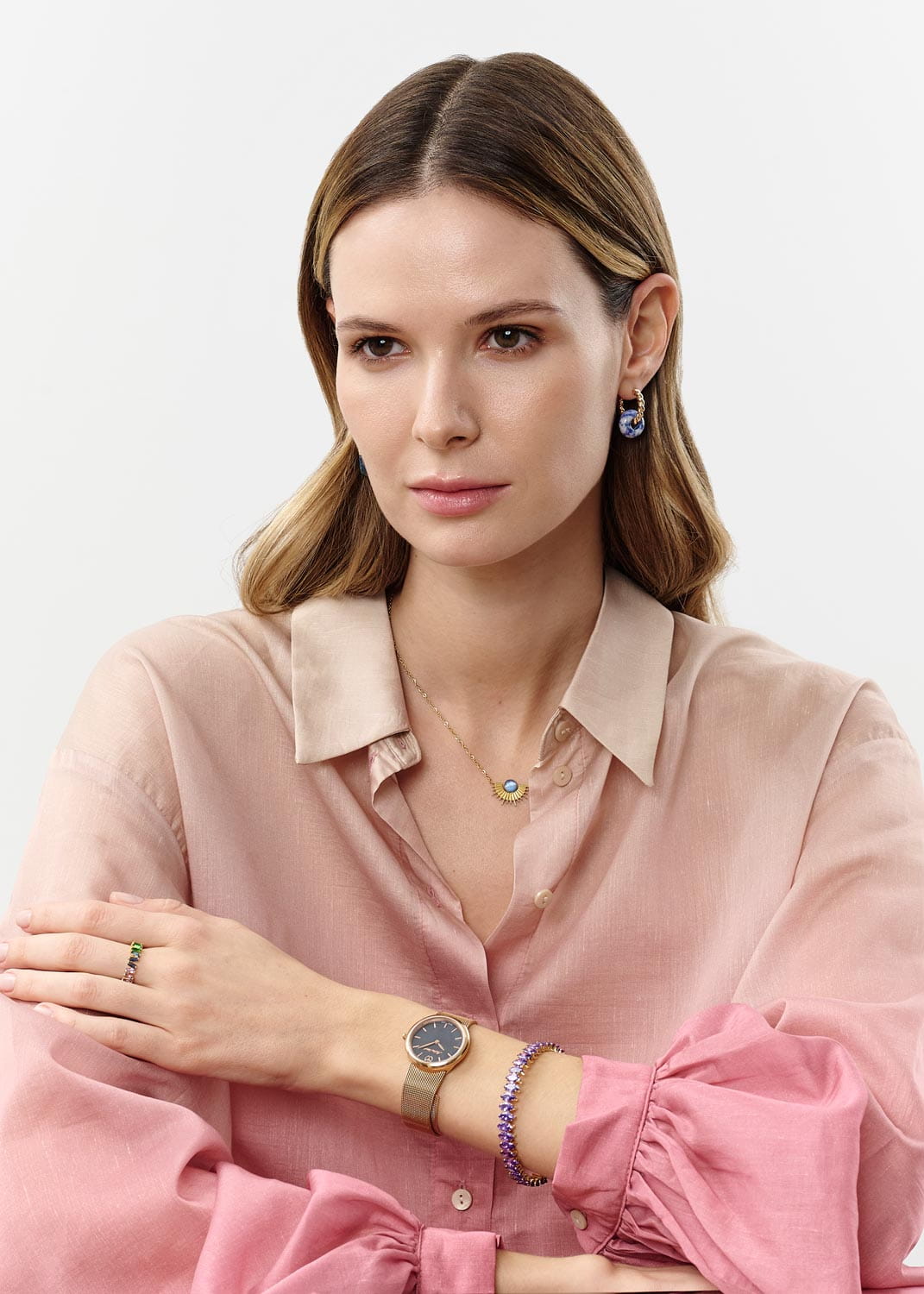 Женские кварцевые часы Mathey-Tissot Milly D403PN — это стильное сочетание элегантности и современного дизайна. Изящный корпус выполнен из нержавеющей стали с PVD-покрытиемPVDУльтратонкое покрытие наносится в технике вакуумного напыления, сочетает в себе нитрид титана особой прочности со слоем золота или оксида хрома. Несёт в себе декоративную или защитную функцию. цвета розового золота, диаметром 30 мм, что придаст образу элегантности и надежности. Изысканный перламутровый циферблат с метками в виде штрихов придает модели особый блеск. Циферблат защищен минеральным стекломМинеральное стеклоМинеральное стекло представляет собой искусственно выращенный минерал кварца. Такое стекло отличается особой устойчивостью к повреждениям и царапинам. Уступает по некоторым качествам сапфировому стеклу. с сапфировым покрытием, обеспечивает устойчивость к царапинам. Часы оснащены надежным кварцевым механизмом. Стальной браслет с PVD-покрытиемPVDУльтратонкое покрытие наносится в технике вакуумного напыления, сочетает в себе нитрид титана особой прочности со слоем золота или оксида хрома. Несёт в себе декоративную или защитную функцию. миланского плетения на раскладном замкеРаскладная застёжкаТакой тип застёжки используется только на браслетах из металла. Она никогда не раскрывается полностью, происходит разделение на 2 и более частей. Раскладывающая застёжка снизит вероятность потери часов к минимуму., гарантирует комфортное и безопасное ношение. Класс водозащиты: 30 метров позволит защитить корпус от случайных брызг или капель дождя. Mathey-Tissot  — отличный выбор для тех, кто ценит утонченность и качество.