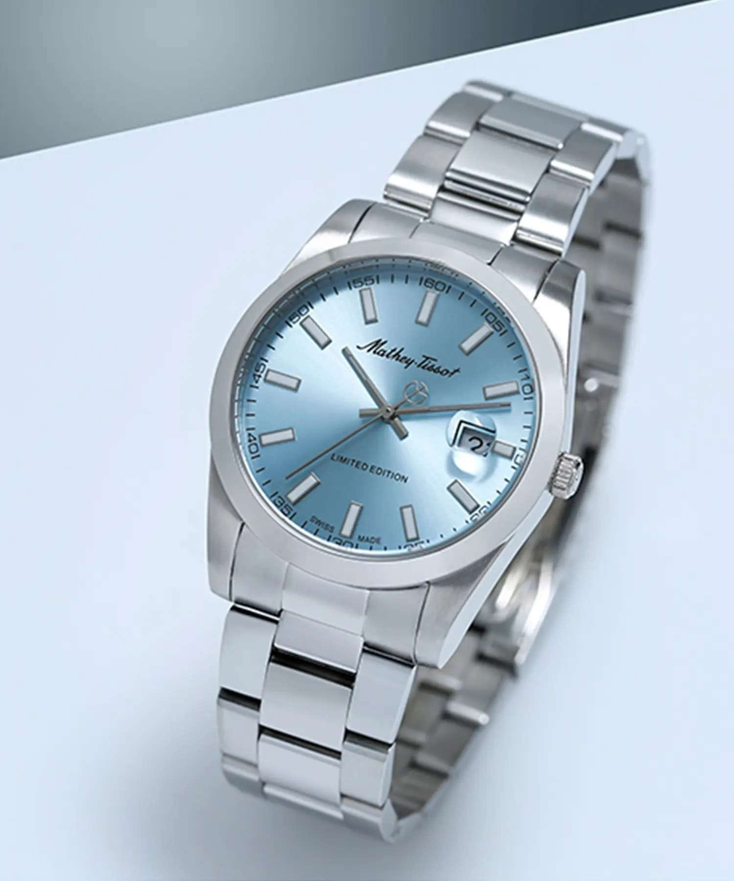 Мужские кварцевые часы Mathey-Tissot Mathy H451BU — это стильное сочетание элегантности и современного дизайна. Лимитированная серия. Изящный корпус выполнен из нержавеющей стали, диаметром 42 мм, что придаст образу элегантности и надежности. Изысканный циферблат с метками в виде штрихов придает модели особый блеск. Циферблат защищен минеральным стекломМинеральное стеклоМинеральное стекло представляет собой искусственно выращенный минерал кварца. Такое стекло отличается особой устойчивостью к повреждениям и царапинам. Уступает по некоторым качествам сапфировому стеклу., обеспечивает устойчивость к царапинам. Стрелки и метки с люминесцентным покрытиемЛюминесцентное покрытиеПозволяет считывать показания времени в темноте. Производители наносят на стрелки, часовые индексы, безель или поверхность циферблата светонакопительный состав, дающий холодное свечение.. Окошко даты находится в положении 3 часа. Часы оснащены надежным кварцевым механизмом. Стальной браслет на раскладной застёжке с фиксаторомРаскладная застёжкаТакой тип застёжки используется только на браслетах из металла. Она никогда не раскрывается полностью, происходит разделение на 2 и более частей. Раскладывающая застёжка снизит вероятность потери часов к минимуму., гарантирует комфортное и безопасное ношение. Рифленая заводная головка. Класс водозащиты: 50 метров, позволит защитить корпус от случайных брызг или капель дождя. Mathey-Tissot — отличный выбор для тех, кто ценит утонченность и качество.