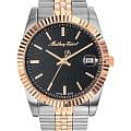 Мужские кварцевые часы Mathey-Tissot Mathy H810RN — это стильное сочетание элегантности и современного дизайна. Изящный корпус выполнен из нержавеющей стали, диаметром 40 мм, что придаст образу элегантности и надежности. Изысканный циферблат с метками в виде штрихов придает модели особый блеск. Циферблат защищен минеральным стекломМинеральное стеклоМинеральное стекло представляет собой искусственно выращенный минерал кварца. Такое стекло отличается особой устойчивостью к повреждениям и царапинам. Уступает по некоторым качествам сапфировому стеклу., обеспечивает устойчивость к царапинам. Стрелки с люминесцентным покрытиемЛюминесцентное покрытиеПозволяет считывать показания времени в темноте. Производители наносят на стрелки, часовые индексы, безель или поверхность циферблата светонакопительный состав, дающий холодное свечение., которое светится в темноте после непродолжительной зарядки на свету. БезельБезельВнешний ободок, закрепляющий стекло. В спортивных часах так называется поворотное кольцо с делениями на циферблате, выполняет роль таймера – замеряет отрезки времени на шкале. Неподвижный безель – элемент декора. Однонаправленно вращающийся безель на дайверских часах позволяет фиксировать моменты погружения и выныривания на поверхность. с PVD-покрытиемPVDУльтратонкое покрытие наносится в технике вакуумного напыления, сочетает в себе нитрид титана особой прочности со слоем золота или оксида хрома. Несёт в себе декоративную или защитную функцию. цвета розового золота. Окошко даты находится в положении 3 часа. Часы оснащены надежным кварцевым механизмом. Стальной браслет с частичным PVD-покрытиемPVDУльтратонкое покрытие наносится в технике вакуумного напыления, сочетает в себе нитрид титана особой прочности со слоем золота или оксида хрома. Несёт в себе декоративную или защитную функцию. на раскладной застёжке с фиксаторомРаскладная застёжкаТакой тип застёжки используется только на браслетах из металла. Она никогда не раскрывается полностью, происходит разделение на 2 и более частей. Раскладывающая застёжка снизит вероятность потери часов к минимуму., гарантирует комфортное и безопасное ношение. Рифленая заводная головка. Класс водозащиты: 50 метров позволит защитить корпус от случайных брызг или капель дождя. Mathey-Tissot — отличный выбор для тех, кто ценит утонченность и качество.