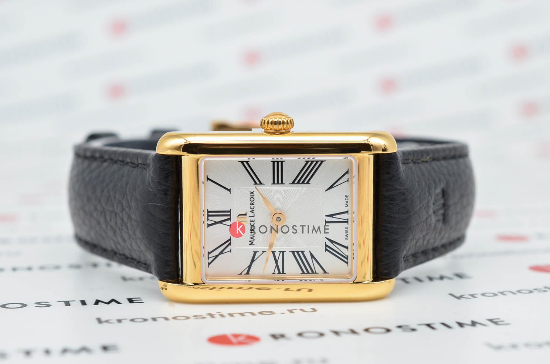 Швейцарские женские кварцевые часы Maurice Lacroix FA1205-PVP01-110-2 из коллекции Fiaba Square. Корпус из нержавеющей стали 316L с PVD-покрытиемPVDУльтратонкое покрытие наносится в технике вакуумного напыления, сочетает в себе нитрид титана особой прочности со слоем золота или оксида хрома. Несёт в себе декоративную или защитную функцию. цвета желтого золота защищен сапфировым стекломСапфировое стеклоПрочный и надёжный материал из кристалла сапфира синтетического происхождения, характеризующийся особой твёрдостью и устойчивостью к царапинам и повреждениям. с антибликовым покрытиемАнтибликовое покрытиеСлой оксида металла в 0,13-0,3 микрон, благодаря которому стекло часов не бликует и не отражает свет. Антибликовое покрытие уменьшает отражение света в 10 раз, обеспечивая отличную читаемость показателей циферблата.. Размер корпуса 24 х 34 мм, толщина 6.5 мм. Серебряный циферблат украшен индексами в виде римских цифр и золотистыми стрелками, создавая элегантный и роскошный облик модели. Часы имеют водонепроницаемость 50 метров, позволит защитить корпус от случайных брызг или капель дождя. Модель комплектуется кожаным ремешком шириной 16 мм. Прочный корпус и надежный механизм гарантируют точность хода и долговечность использования. Эти часы сочетают в себе современный дизайн и классическую элегантность, делая их идеальным выбором для ценительниц стильных аксессуаров.