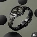 Механический механизм (автоматический калибр) с высокой точностью. Сапфировое стеклоСапфировое стеклоПрочный и надёжный материал из кристалла сапфира синтетического происхождения, характеризующийся особой твёрдостью и устойчивостью к царапинам и повреждениям. устойчивое к появлению царапин, обладающее высокой прозрачностью. Стрелки с люминесцентным покрытиемЛюминесцентное покрытиеПозволяет считывать показания времени в темноте. Производители наносят на стрелки, часовые индексы, безель или поверхность циферблата светонакопительный состав, дающий холодное свечение.. Керамический безельБезельВнешний ободок, закрепляющий стекло. В спортивных часах так называется поворотное кольцо с делениями на циферблате, выполняет роль таймера – замеряет отрезки времени на шкале. Неподвижный безель – элемент декора. Однонаправленно вращающийся безель на дайверских часах позволяет фиксировать моменты погружения и выныривания на поверхность.. Класс водозащиты: 100 метров, позволит плавать, нырять и заниматься другими водными видами спорта. Корпус часов изготовлен из нержавеющей стали с PVD-покрытиемPVDУльтратонкое покрытие наносится в технике вакуумного напыления, сочетает в себе нитрид титана особой прочности со слоем золота или оксида хрома. Несёт в себе декоративную или защитную функцию.. Нейлоновый ремешок с застёжкой «бабочка» с кнопкамиЗастёжка "бабочка"Такой вид застёжки дополняется предохранителями, помогающими избежать случайного раскрытия браслета. Обладают изящным исполнением. .