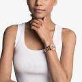 Женские американские часы Michael Kors BRYANT MK7541 имеют кварцевый механизм с высокой точностью. Корпус часов изготовлен из нержавеющей стали с PVD-покрытиемPVDУльтратонкое покрытие наносится в технике вакуумного напыления, сочетает в себе нитрид титана особой прочности со слоем золота или оксида хрома. Несёт в себе декоративную или защитную функцию. цвета розового золота, диаметром 35 мм. Циферблат защищен минеральным стекломМинеральное стеклоМинеральное стекло представляет собой искусственно выращенный минерал кварца. Такое стекло отличается особой устойчивостью к повреждениям и царапинам. Уступает по некоторым качествам сапфировому стеклу., что обеспечивает надежную защиту от царапин и повреждений. БезельБезельВнешний ободок, закрепляющий стекло. В спортивных часах так называется поворотное кольцо с делениями на циферблате, выполняет роль таймера – замеряет отрезки времени на шкале. Неподвижный безель – элемент декора. Однонаправленно вращающийся безель на дайверских часах позволяет фиксировать моменты погружения и выныривания на поверхность. украшен кристаллами. Класс водозащиты: 50 метров позволит защитить корпус от случайных брызг или капель дождя. Стальной браслет с PVD-покрытиемPVDУльтратонкое покрытие наносится в технике вакуумного напыления, сочетает в себе нитрид титана особой прочности со слоем золота или оксида хрома. Несёт в себе декоративную или защитную функцию. на раскладной застёжкеРаскладная застёжкаТакой тип застёжки используется только на браслетах из металла. Она никогда не раскрывается полностью, происходит разделение на 2 и более частей. Раскладывающая застёжка снизит вероятность потери часов к минимуму. обеспечивает надежную фиксацию на запястье и легкость в надевании и снятии. Эти часы станут отличным дополнением к любому наряду, подчеркивая индивидуальность и стиль их обладательницы. Идеальный аксессуар, который придаст женскому образу завершенность и особый шарм.