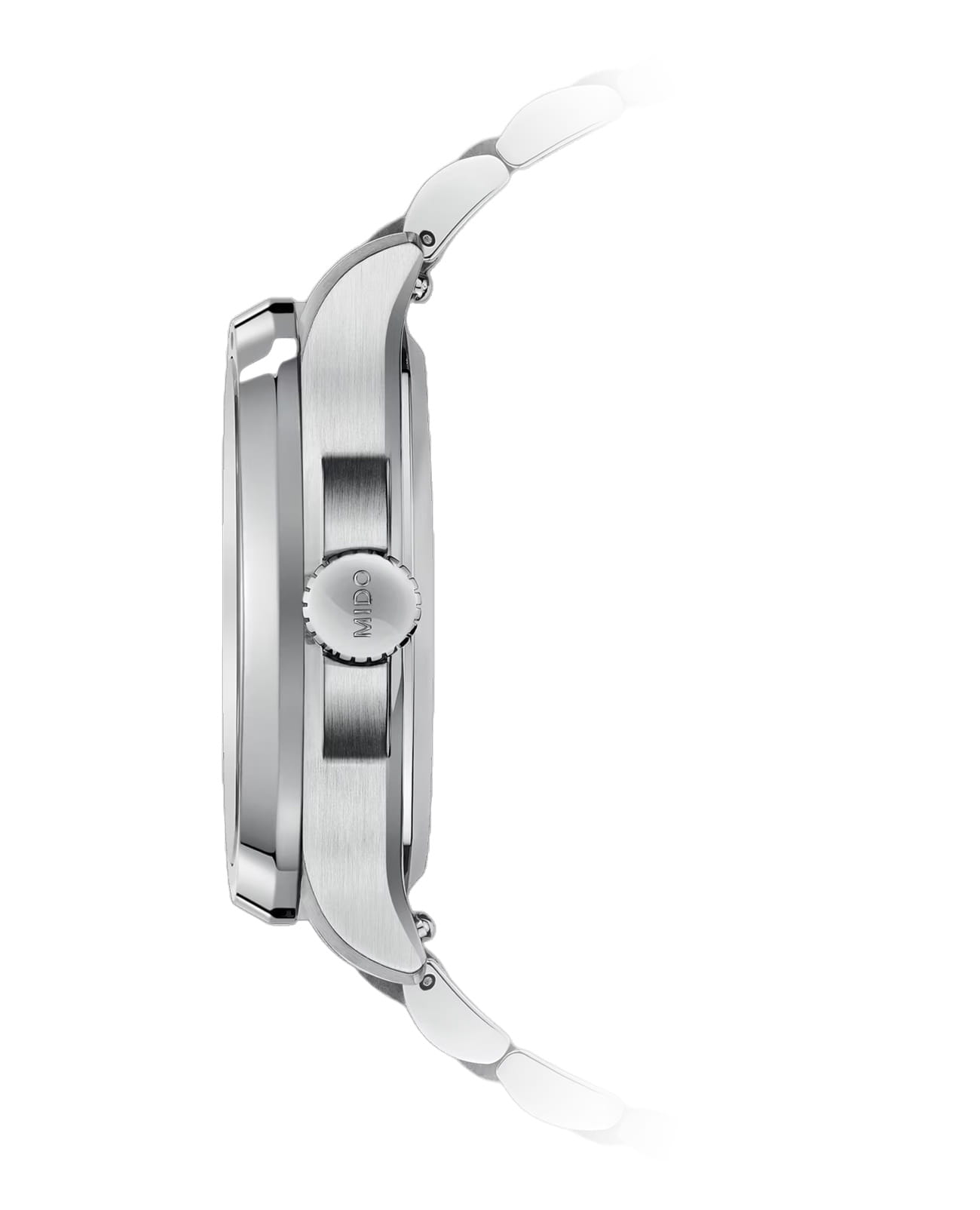 Мужские механические швейцарские часы Mido Multifort TV Big Date M049.526.11.091.00, механический механизм (автоматический калибр) с высокой точностью. Сапфировое стеклоСапфировое стеклоПрочный и надёжный материал из кристалла сапфира синтетического происхождения, характеризующийся особой твёрдостью и устойчивостью к царапинам и повреждениям. устойчивое к появлению царапин, обладающее высокой прозрачностью. Корпус часов изготовлен из нержавеющей стали в форме телевизора, столь же впечатляющий, сколь и точный, благодаря своему мощному механическому механизму. Современный и динамичный дизайн этих швейцарских часов подчеркивается ярким горизонтальным циферблатом с матовой отделкой, а также их отличительной функцией: большой датой в положении 12 часов. Стрелки с люминесцентным покрытиемЛюминесцентное покрытиеПозволяет считывать показания времени в темноте. Производители наносят на стрелки, часовые индексы, безель или поверхность циферблата светонакопительный состав, дающий холодное свечение.. Мощный автоматический механизм последнего поколения Calibre 80 оснащен высокотехнологичной балансировочной пружиной Nivachron ™ , которая обеспечивает исключительную устойчивость к ударам и магнитным полям. Класс водозащиты: 100 метров, позволит плавать, нырять и заниматься другими водными видами спорта. Стальной браслет на раскладной застёжкеРаскладная застёжкаТакой тип застёжки используется только на браслетах из металла. Она никогда не раскрывается полностью, происходит разделение на 2 и более частей. Раскладывающая застёжка снизит вероятность потери часов к минимуму..