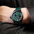 Мужские механические часы с автоподзаводом — это надёжный аксессуар от легендарного бренда «МОЛНИЯ», созданного на Челябинском часовом заводе. Корпус диаметром 44 мм и высотой 12 мм выполнен из нержавеющей стали 316L с IP-покрытиемIP-покрытиеМетод ионного напыления. Демонстрирует повышенную устойчивость к истиранию, окислению и химическим веществам. Под воздействием высокого давления и температуры около 1500°C молекулы металла надёжно соединяются с частицами корпуса часов.. Циферблат зелёного цвета матовый, оформлен стрелками и индексами с люминесцентным покрытиемЛюминесцентное покрытиеПозволяет считывать показания времени в темноте. Производители наносят на стрелки, часовые индексы, безель или поверхность циферблата светонакопительный состав, дающий холодное свечение. Super-LumiNova. Окошко даты расположено в положении 3 часов. Циферблат защищён сапфировым стекломСапфировое стеклоПрочный и надёжный материал из кристалла сапфира синтетического происхождения, характеризующийся особой твёрдостью и устойчивостью к царапинам и повреждениям. толщиной 1,5 мм. Механизм — японский автоматический калибр Miyota 8215 с функцией и запасом хода 42 часа. Часы оснащены кожаным ремешком зелёного цвета шириной 22 мм с классической пряжкой. Водонепроницаемость 100 м позволяет использовать часы для плавания и повседневного ношения. Идеальный выбор для тех, кто ценит российское качество и мужественный дизайн.