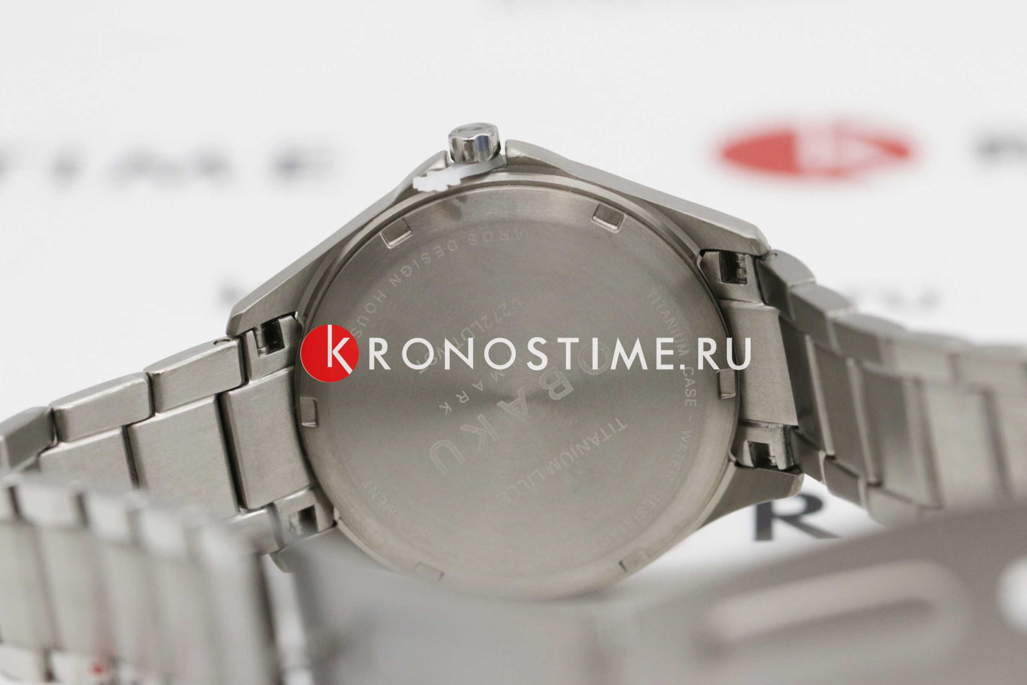 Корпус часов изготовлен из титана. Титановый браслет на раскладной застёжкеРаскладная застёжкаТакой тип застёжки используется только на браслетах из металла. Она никогда не раскрывается полностью, происходит разделение на 2 и более частей. Раскладывающая застёжка снизит вероятность потери часов к минимуму. шириной 18 мм. Заводная головка с защитой. Арабская индикация времени. Окошко даты находятся в положении 3 часа.