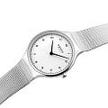 Obaku V306LXCWMC – элегантные женские часы, сочетающие современный дизайн и высокое качество исполнения. Корпус диаметром 32 мм и толщиной менее 5 мм выполнен из нержавеющей стали, придающим модели стильный и современный вид. Белый циферблат защищён сапфировым стекломСапфировое стеклоПрочный и надёжный материал из кристалла сапфира синтетического происхождения, характеризующийся особой твёрдостью и устойчивостью к царапинам и повреждениям., устойчивым к царапинам, обеспечивая долговечность и сохранение внешнего вида. Часы оснащены точным кварцевым механизмом, обеспечивающим надёжность и точность хода. Минималистичный дизайн циферблата подчёркивает скандинавскую эстетику и утончённость. Браслет из нержавеющей стали и сетчатым плетением на раскладном замкеРаскладной замокДанный вариант застежки используется только на часах с металлическим браслетом. Отличительная особенность такого крепления в том, что длина браслета становится универсальной и вы можете самостоятельно отрегулировать нужный вам размер – застежка просто двигается по браслету часов., обеспечивающей комфортное ношение и надёжную фиксацию на запястье. Водонепроницаемость до 30 метров (3 ATM) защищает модель от случайных брызг и дождя, делая её идеальным выбором для повседневного использования.