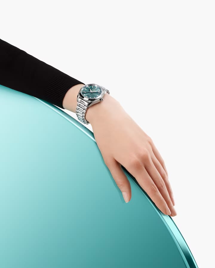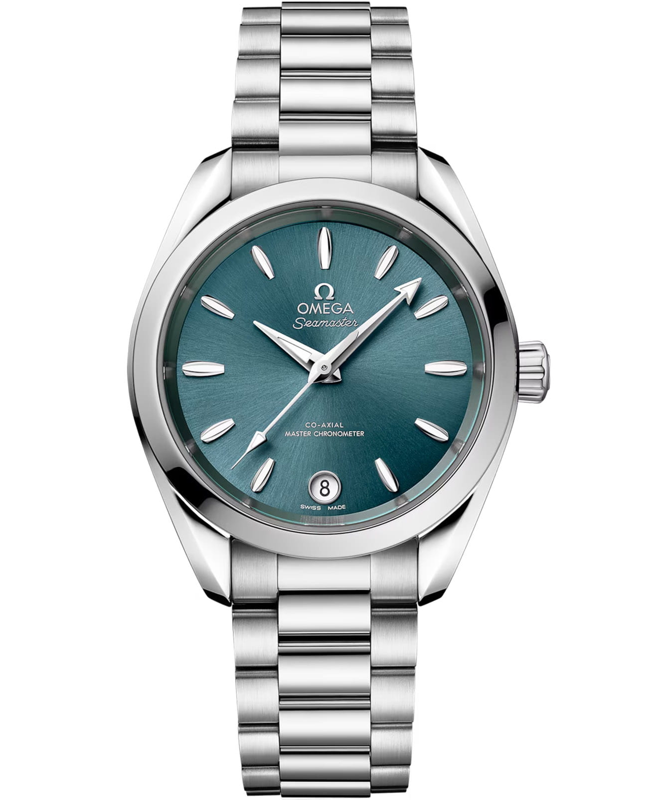 Omega Seamaster Aqua Terra выполнены в симметричном корпусе из полированной нержавеющей стали с завинчивающейся задней крышкой, украшенной волновым узором. Циферблат изготовлен из латуни и обработан методом солнечной шлифовки от центра к краям. Циферблат дополнен окошком даты на 6 часах, стрелками и метками из 18K белого золота с алмазной полировкой для высокой контрастности и читаемости. Логотип OMEGA также выполнен в этом же материале. Калибр Omega 8800 сертифицирован как Master Chronometer — гарантия высочайшей точности и устойчивости к магнитным полям. Запас хода составляет 55 часов. Защиту циферблата обеспечивает сапфировое стеклоСапфировое стеклоПрочный и надёжный материал из кристалла сапфира синтетического происхождения, характеризующийся особой твёрдостью и устойчивостью к царапинам и повреждениям. с антибликовым покрытиемАнтибликовое покрытиеСлой оксида металла в 0,13-0,3 микрон, благодаря которому стекло часов не бликует и не отражает свет. Антибликовое покрытие уменьшает отражение света в 10 раз, обеспечивая отличную читаемость показателей циферблата. с обеих сторон. Водозащита позволяет использовать часы в воде без риска повреждения. Часы установлены на браслет со скруглёнными звеньями и раскладной застёжкойРаскладная застёжкаТакой тип застёжки используется только на браслетах из металла. Она никогда не раскрывается полностью, происходит разделение на 2 и более частей. Раскладывающая застёжка снизит вероятность потери часов к минимуму.. Это сочетание премиального качества, технологичности и классического дизайна.