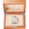 , а также чередующиеся римские цифры и индексы в форме кабошона. 270-градусный индикатор запаса хода расположен в положении "6 часов". Он имеет двухслойную конструкцию в форме полумесяца, состоящую из нижней пластины с изящной контрастной отделкой, выполненной в одной цветовой гамме, и верхней пластины с 4-я секторальными прорезями. Изделие с лаконичным дизайном дополнено окошком указателя даты в положении «6 часов», счетчиком малой секундной стрелки в положении «9 часов» и минутной шкалой в стиле «железная дорога» на внешнем секторе. Часы с сертификатом Master Chronometer представлены с браслетом из нержавеющей стали и желтого золота18-каратное золотоОбозначение по каратной системе пробирования, оно показывает, сколько драгоценного металла содержится в изделии. 18 карат - в составе 75% чистого золота, соответствует 750 пробе.