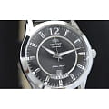 Минималистичный циферблат дополнен стильным узором. Модель оснащена японским автоматическим калибром Orient 46Е40 с запасом хода до 40 часов, противоударное устройство оси баланса обеспечивает лучшую защиту. Ремешок из натуральной кожи имеет рисунок под крокодиловую кожу. Стрелки и метки дополнены люминесцентной подсветкойЛюминесцентное покрытиеПозволяет считывать показания времени в темноте. Производители наносят на стрелки, часовые индексы, безель или поверхность циферблата светонакопительный состав, дающий холодное свечение.. Функции: отображение числа, дня недели.