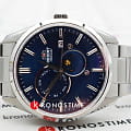 Часы Orient RA-AK0308L из коллекции Sun & Moon — это изысканная модель, сочетающая элегантный стиль и продвинутые функции. Корпус диаметром 42 мм выполнен из нержавеющей стали и защищён сапфировым стекломСапфировое стеклоПрочный и надёжный материал из кристалла сапфира синтетического происхождения, характеризующийся особой твёрдостью и устойчивостью к царапинам и повреждениям., обеспечивающим устойчивость к царапинам. Глубокий синий циферблат украшен серебристыми стрелками и , который элегантно отображает смену времени суток. Дополнительный индикатор дня недели и окошко даты на отметке «3 часа» придают модели функциональности и практичности. Автоматический механизм Orient Calibre F6B24 поддерживает ручной завод и функцию остановки секундной стрелки, обеспечивая точность и надёжность. Запас хода составляет до 40 часов. Браслет из нержавеющей стали с раскладной застёжкойРаскладная застёжкаТакой тип застёжки используется только на браслетах из металла. Она никогда не раскрывается полностью, происходит разделение на 2 и более частей. Раскладывающая застёжка снизит вероятность потери часов к минимуму. обеспечивает удобную посадку и надёжную фиксацию на запястье. Водонепроницаемость до 50 метров делает модель подходящей для повседневного использования. Orient RA-AK0308L — это идеальный выбор для ценителей японского качества, утончённого стиля и современных технологий.
