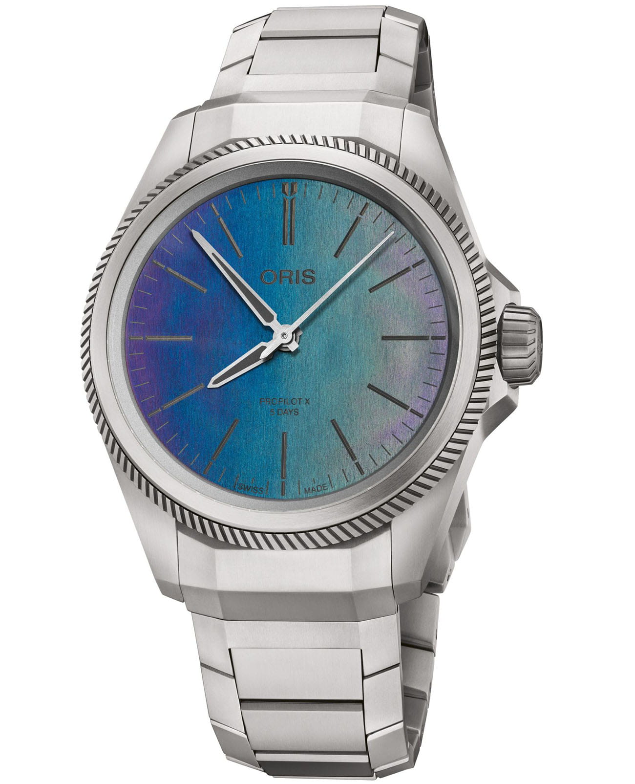 В циферблате часов использована современная технология, вдохновленная биомимикрией, отражающая чудеса природы, как переливающиеся крылья жука. Разработанная совместно с ETH Zürich, эта технология впервые использована в часах, что позволяет наслаждаться запястьем. Модель ProPilot X Calibre 400 Laser в 39-миллиметровом титановом корпусе и на браслете украшена разноцветным циферблатом, созданным с помощью новой лазерной техники. Синий, зеленый и фиолетовый цвета достигаются за счет отраженного света, а не пигмента. Технологическая красота.