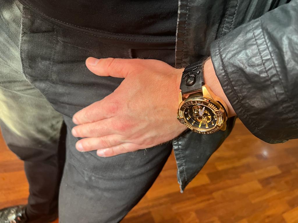 Яркие мужские часы с минеральным стекломМинеральное стеклоМинеральное стекло представляет собой искусственно выращенный минерал кварца. Такое стекло отличается особой устойчивостью к повреждениям и царапинам. Уступает по некоторым качествам сапфировому стеклу. Philipp Plein The Skull PWAAA0521, кварцевый механизм с высокой точностью. Класс водозащиты: 50 метров, позволит защитить корпус от случайных брызг или капель дождя. Корпус часов изготовлен из стали с IP-покрытиемIP-покрытиеМетод ионного напыления. Демонстрирует повышенную устойчивость к истиранию, окислению и химическим веществам. Под воздействием высокого давления и температуры около 1500°C молекулы металла надёжно соединяются с частицами корпуса часов..