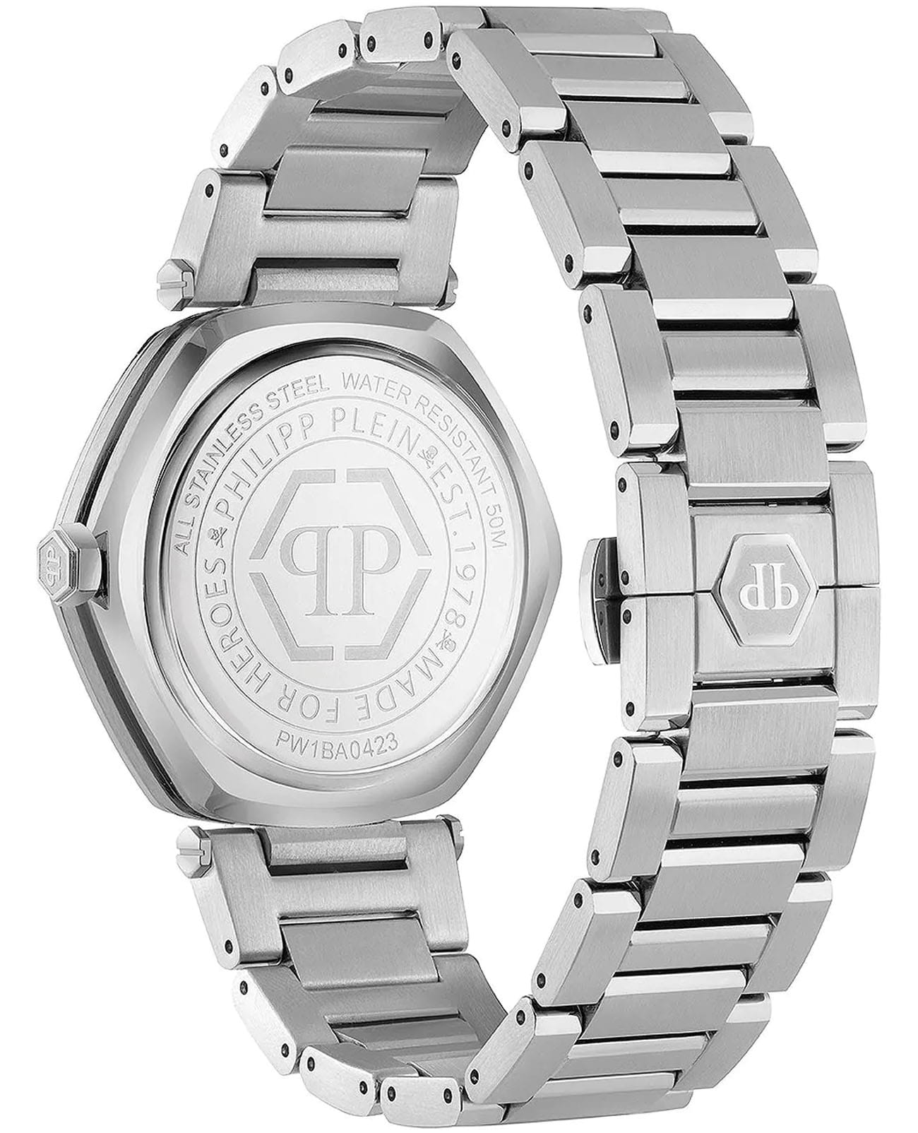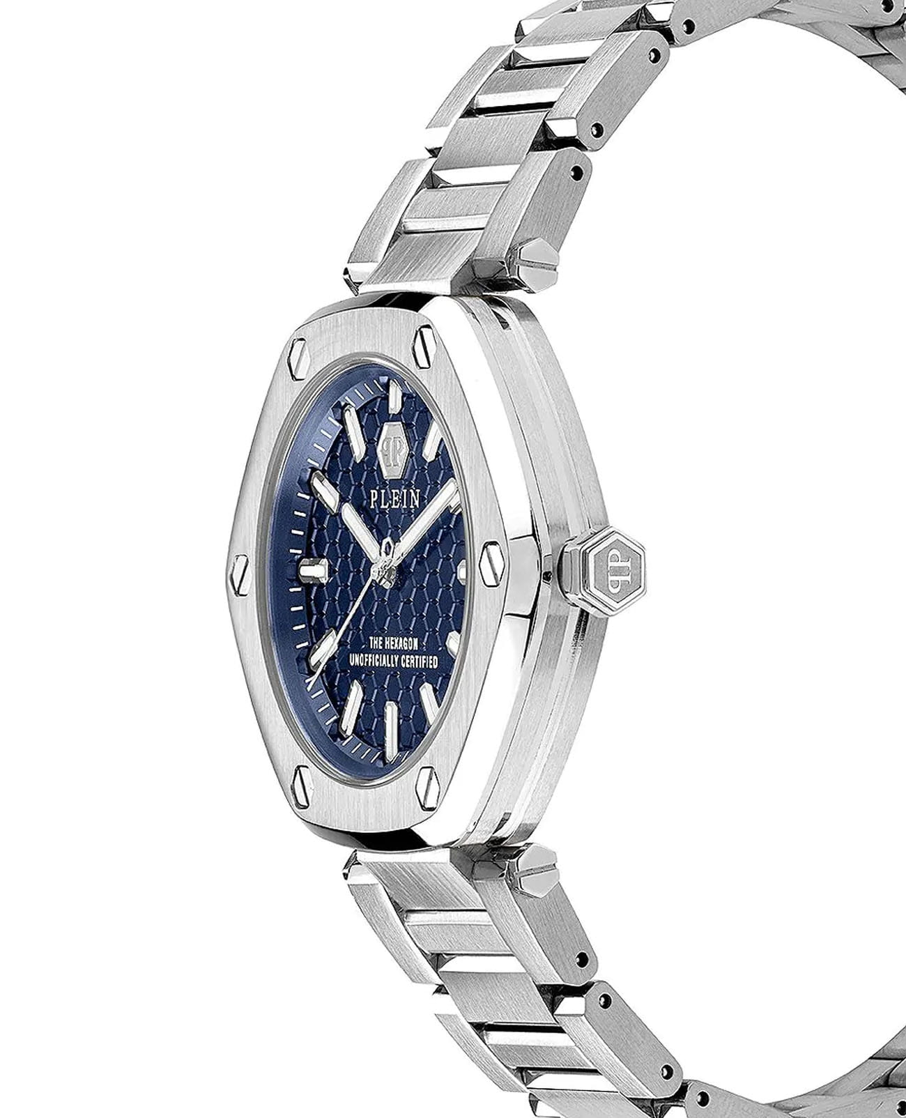 Стильные женские часы Philipp Plein The Hexagon PW1BA0423 с надежным кварцевым механизмом. Корпус часов изготовлен из нержавеющей стали. Минеральное стеклоМинеральное стеклоМинеральное стекло представляет собой искусственно выращенный минерал кварца. Такое стекло отличается особой устойчивостью к повреждениям и царапинам. Уступает по некоторым качествам сапфировому стеклу. устойчивое к мелким механическим повреждениям. Влагозащита: 50 метров, позволит защитить корпус от случайных брызг или капель дождя. Стрелки и метки с люминесцентным покрытиемЛюминесцентное покрытиеПозволяет считывать показания времени в темноте. Производители наносят на стрелки, часовые индексы, безель или поверхность циферблата светонакопительный состав, дающий холодное свечение.. Стальной браслет на застёжке-бабочке с кнопкамиЗастёжка "бабочка"Такой вид застёжки дополняется предохранителями, помогающими избежать случайного раскрытия браслета. Обладают изящным исполнением. .