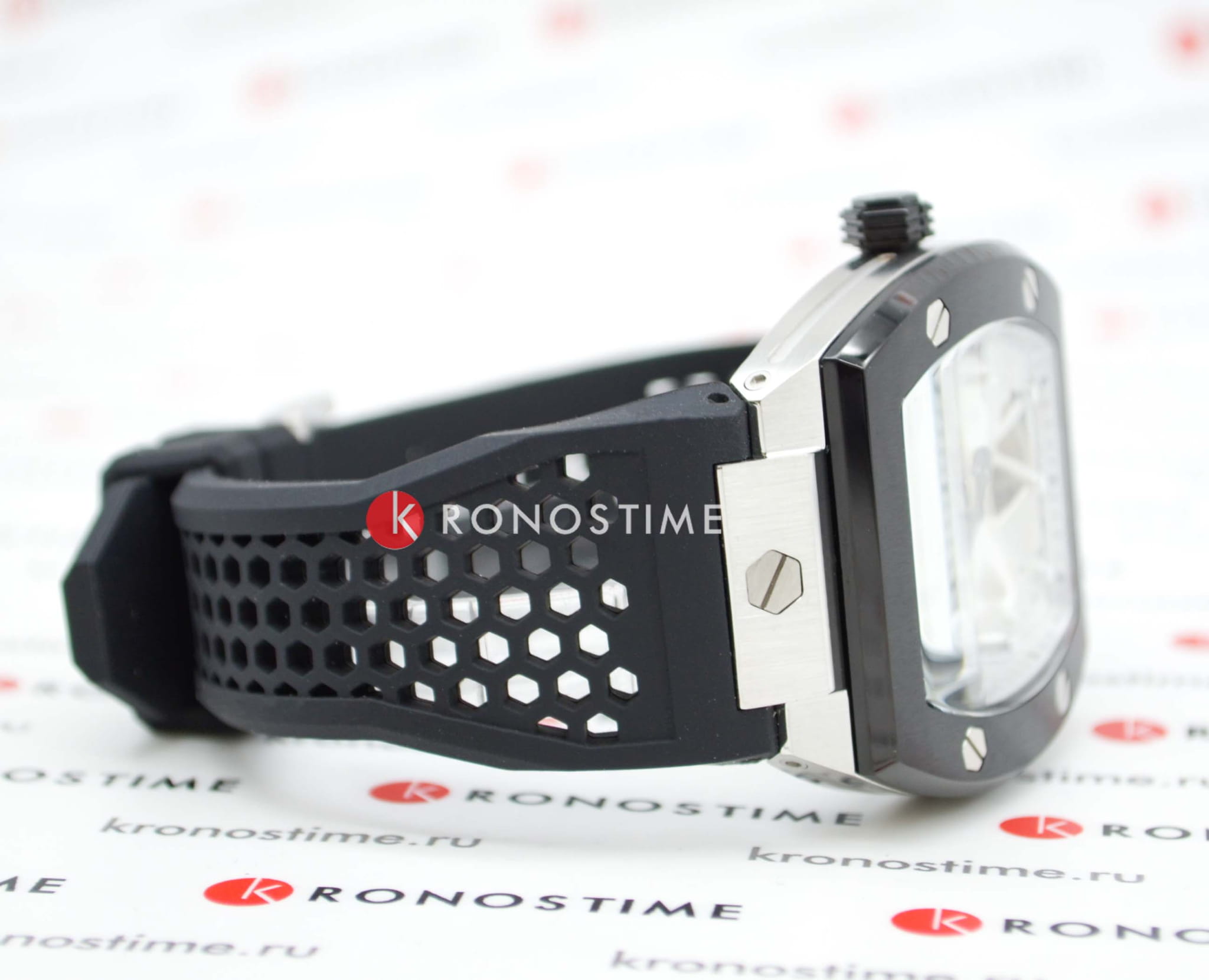 БезельБезельВнешний ободок, закрепляющий стекло. В спортивных часах так называется поворотное кольцо с делениями на циферблате, выполняет роль таймера – замеряет отрезки времени на шкале. Неподвижный безель – элемент декора. Однонаправленно вращающийся безель на дайверских часах позволяет фиксировать моменты погружения и выныривания на поверхность. с IP-покрытиемIP-покрытиеМетод ионного напыления. Демонстрирует повышенную устойчивость к истиранию, окислению и химическим веществам. Под воздействием высокого давления и температуры около 1500°C молекулы металла надёжно соединяются с частицами корпуса часов..