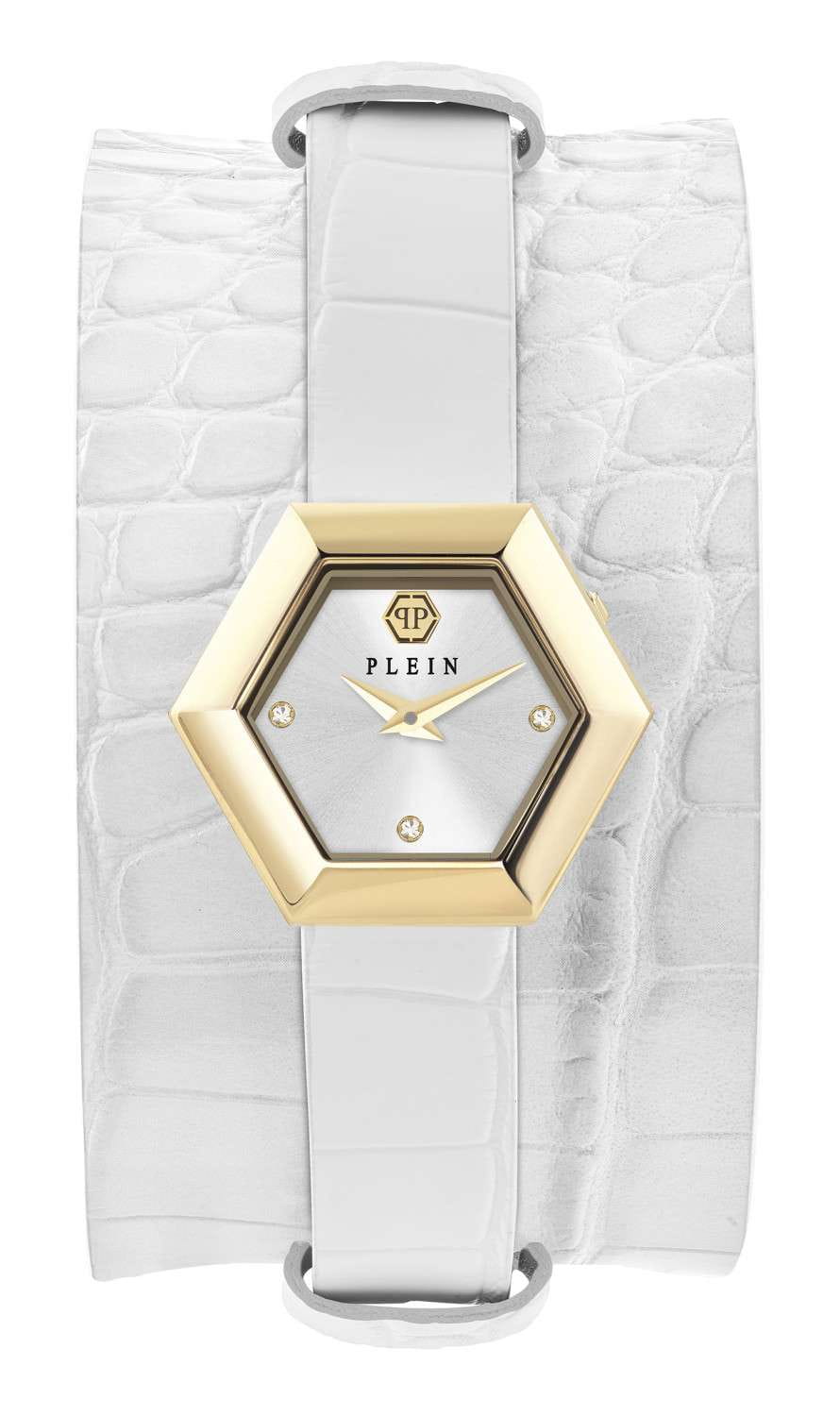Женские кварцевые часы Philipp Plein La Jungle De Plein PW6FA0125_SET — это стильное сочетание элегантности и современного дизайна. Изящный корпус выполнен из нержавеющей стали с PVD-покрытиемPVDУльтратонкое покрытие наносится в технике вакуумного напыления, сочетает в себе нитрид титана особой прочности со слоем золота или оксида хрома. Несёт в себе декоративную или защитную функцию. золотистого цвета, диаметром 28 мм, что придаст образу женственности и романтизма. Изысканный циферблат с метками в виде точек украшены кристаллами придает модели особый блеск. Циферблат защищен минеральным стекломМинеральное стеклоМинеральное стекло представляет собой искусственно выращенный минерал кварца. Такое стекло отличается особой устойчивостью к повреждениям и царапинам. Уступает по некоторым качествам сапфировому стеклу., обеспечивающий устойчивость к царапинам. Часы оснащены надежным кварцевым механизмом. Кожаный ремешок на стандартной застёжке, гарантирует комфортное и безопасное ношение. Класс водозащиты: 50 метров позволит защитить корпус от случайных брызг или капель дождя. Phlipp Plein — отличный выбор для тех, кто ценит яркость и качество. В комплекте доп. ремешок из искусственной кожи.