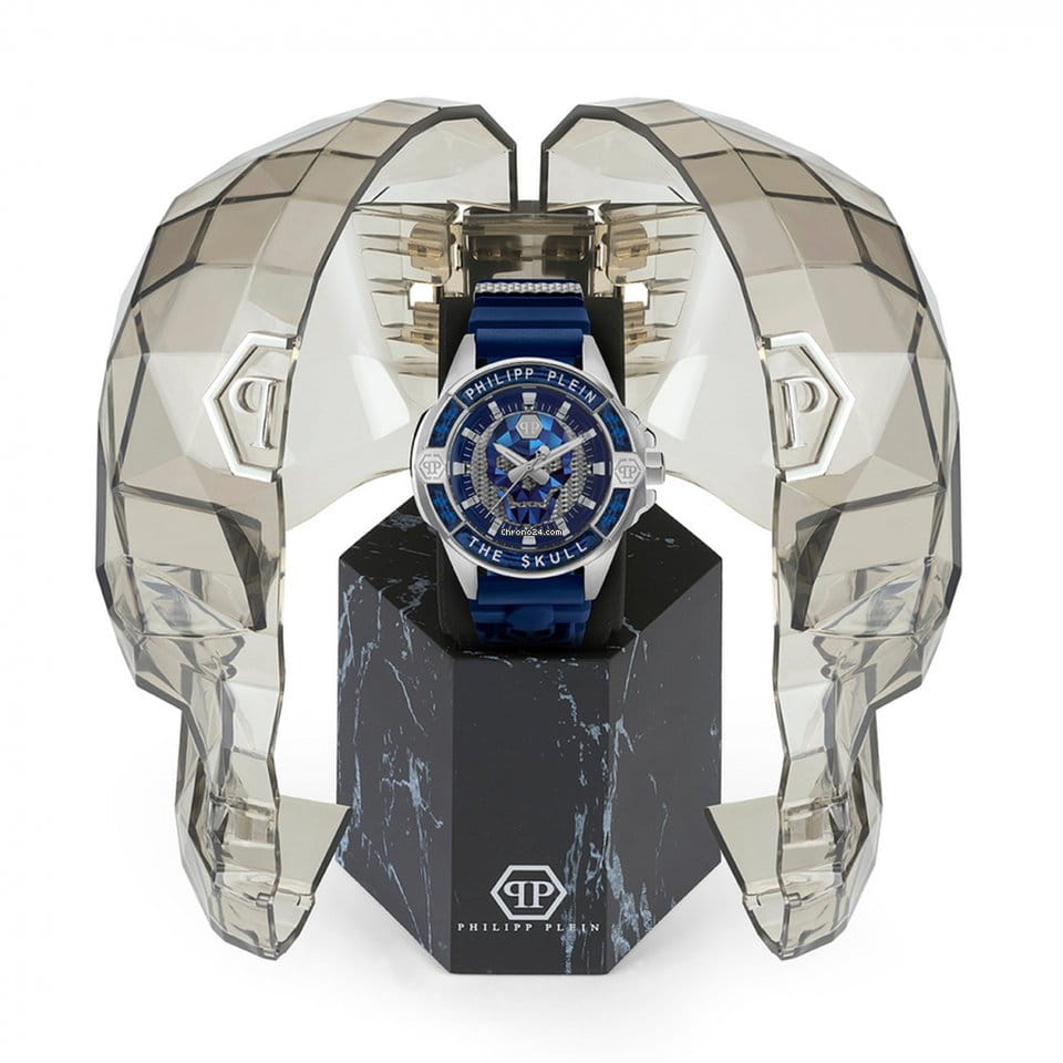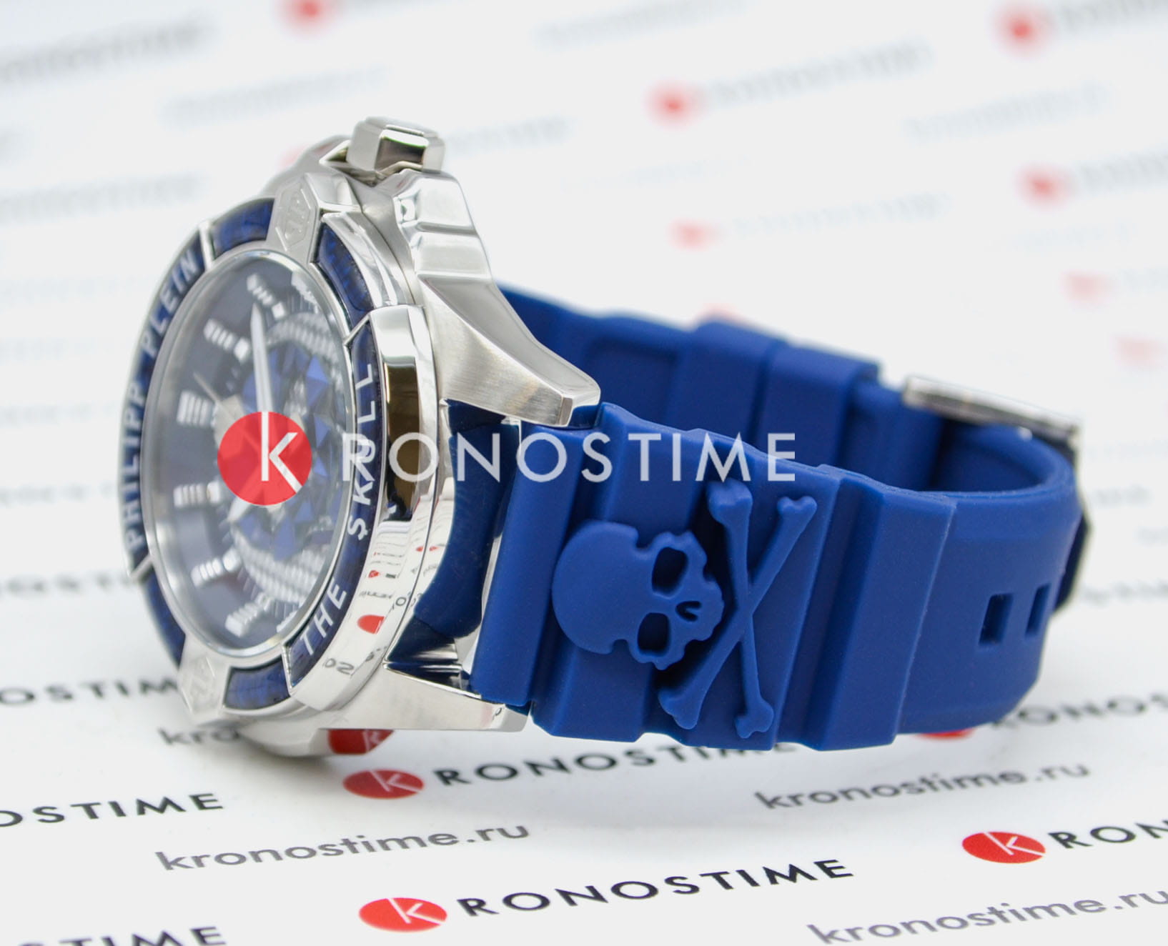 Мужские кварцевые часы с синим карбоновым покрытием циферблата Philipp Plein The Skull Carbon Fiber PWAAA1722, кварцевый механизм с высокой точностью. Класс водозащиты: 50 метров, позволит защитить корпус от случайных брызг или капель дождя. Круглый корпус выполнен из нержавеющей стали. Заводная головка с защитой. Синий силиконовый ремешок шириной 22 мм, стандартная застежка.
