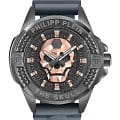 Эти необычные часы, воплощающие в себе уникальное сочетание узнаваемости бренда и непредсказуемости, каждый день будут напоминать вам о том, что нет таких целей, которых вы не смогли бы достичь. Мужские часы с японским кварцевым механизмом. Круглый стальной корпус с серым IP-покрытиемIP-покрытиеМетод ионного напыления. Демонстрирует повышенную устойчивость к истиранию, окислению и химическим веществам. Под воздействием высокого давления и температуры около 1500°C молекулы металла надёжно соединяются с частицами корпуса часов.. БезельБезельВнешний ободок, закрепляющий стекло. В спортивных часах так называется поворотное кольцо с делениями на циферблате, выполняет роль таймера – замеряет отрезки времени на шкале. Неподвижный безель – элемент декора. Однонаправленно вращающийся безель на дайверских часах позволяет фиксировать моменты погружения и выныривания на поверхность. украшен шестиугольными логотипами бренда, расположенными симметрично слева и справа, сверху украшен символичным логотипом Philipp Plein, а снизу украшен названием коллекции ''The Skull''. Гильошированный серый циферблат декорирован шестиугольным логотипом бренда в положении 12 часов и объемным черепом в цвете розовое золото. Метки в виде штрихов. Высокопрочное минеральное стеклоМинеральное стеклоМинеральное стекло представляет собой искусственно выращенный минерал кварца. Такое стекло отличается особой устойчивостью к повреждениям и царапинам. Уступает по некоторым качествам сапфировому стеклу.. Граненая заводная головка с защитой. Серый силиконовый ремешок с классической застежкой украшен объемным черепом и стальной вставкой. Фирменная дизайнерская упаковка.