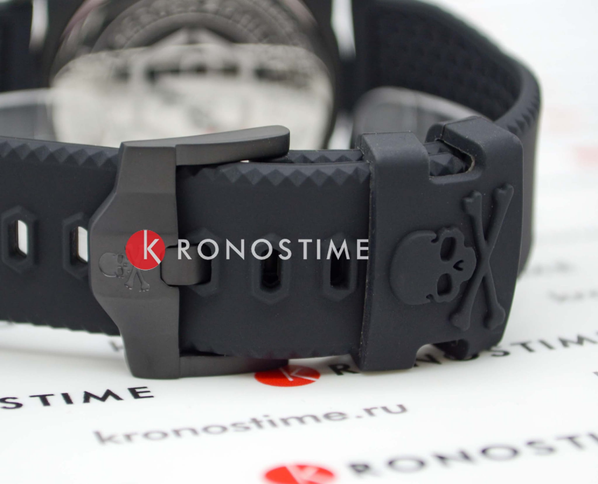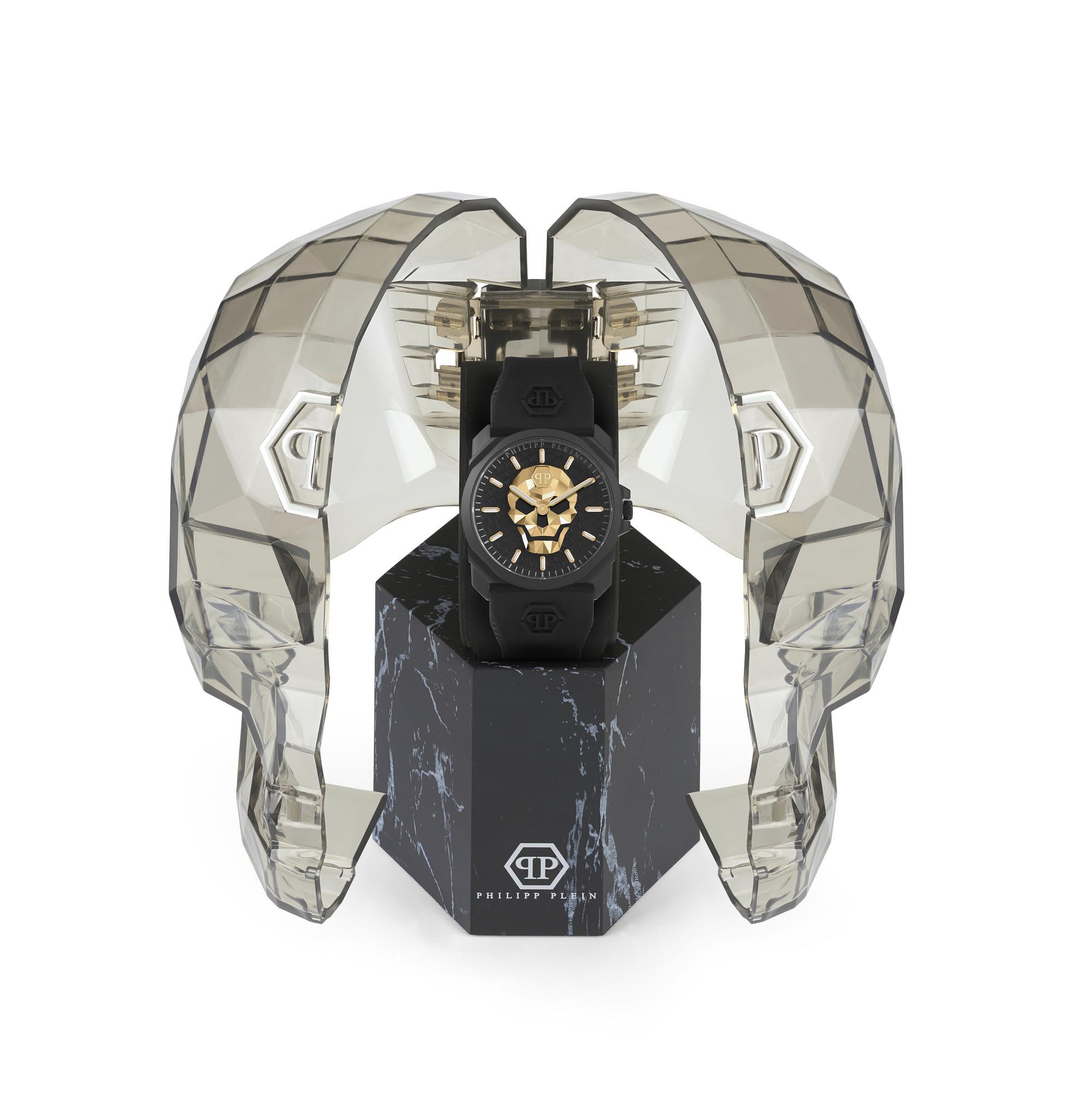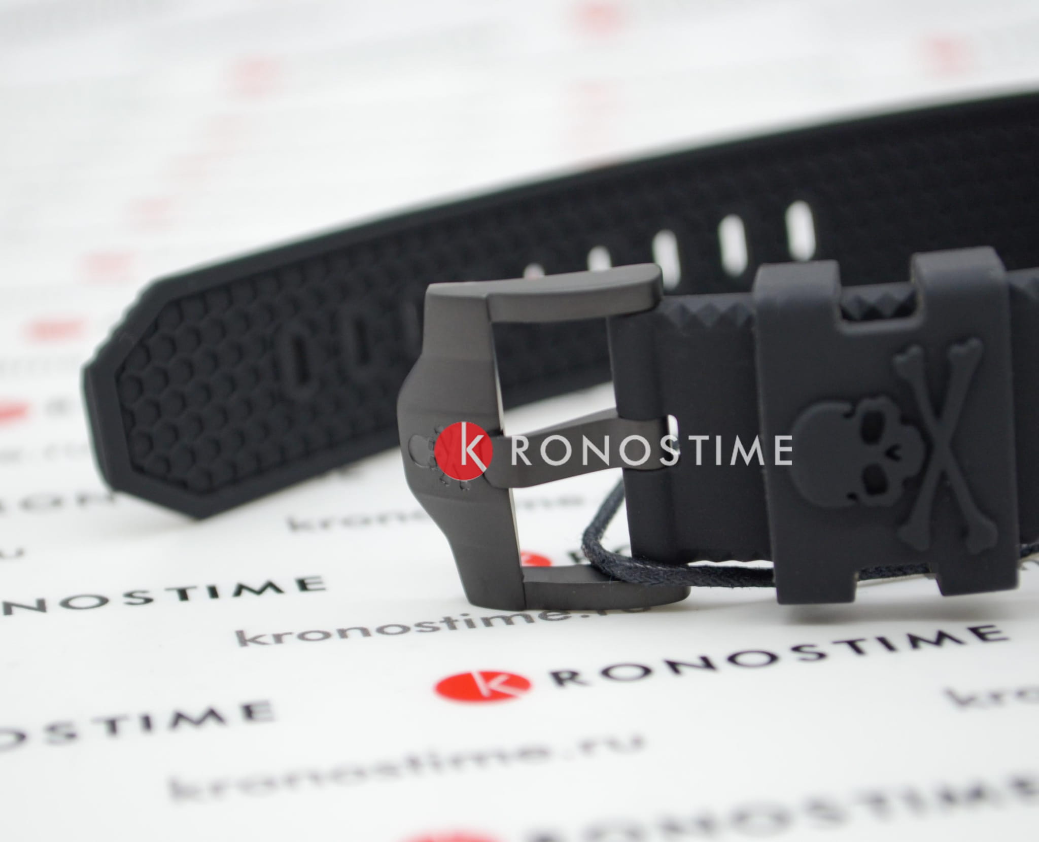 Мужские кварцевые часы с фирменным изображением черепа Philipp Plein The Skull King PWLAA0322, кварцевый механизм с высокой точностью. Класс водозащиты: 50 метров, позволит защитить корпус от случайных брызг или капель дождя. Корпус часов изготовлен из стали с IP-покрытиемIP-покрытиеМетод ионного напыления. Демонстрирует повышенную устойчивость к истиранию, окислению и химическим веществам. Под воздействием высокого давления и температуры около 1500°C молекулы металла надёжно соединяются с частицами корпуса часов. черного цвета. Черный силиконовый ремешок шириной 26 мм, стандартная застежка. Прочное минеральное стеклоМинеральное стеклоМинеральное стекло представляет собой искусственно выращенный минерал кварца. Такое стекло отличается особой устойчивостью к повреждениям и царапинам. Уступает по некоторым качествам сапфировому стеклу. устойчивое к мелким механическим повреждениям.