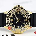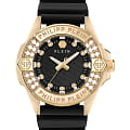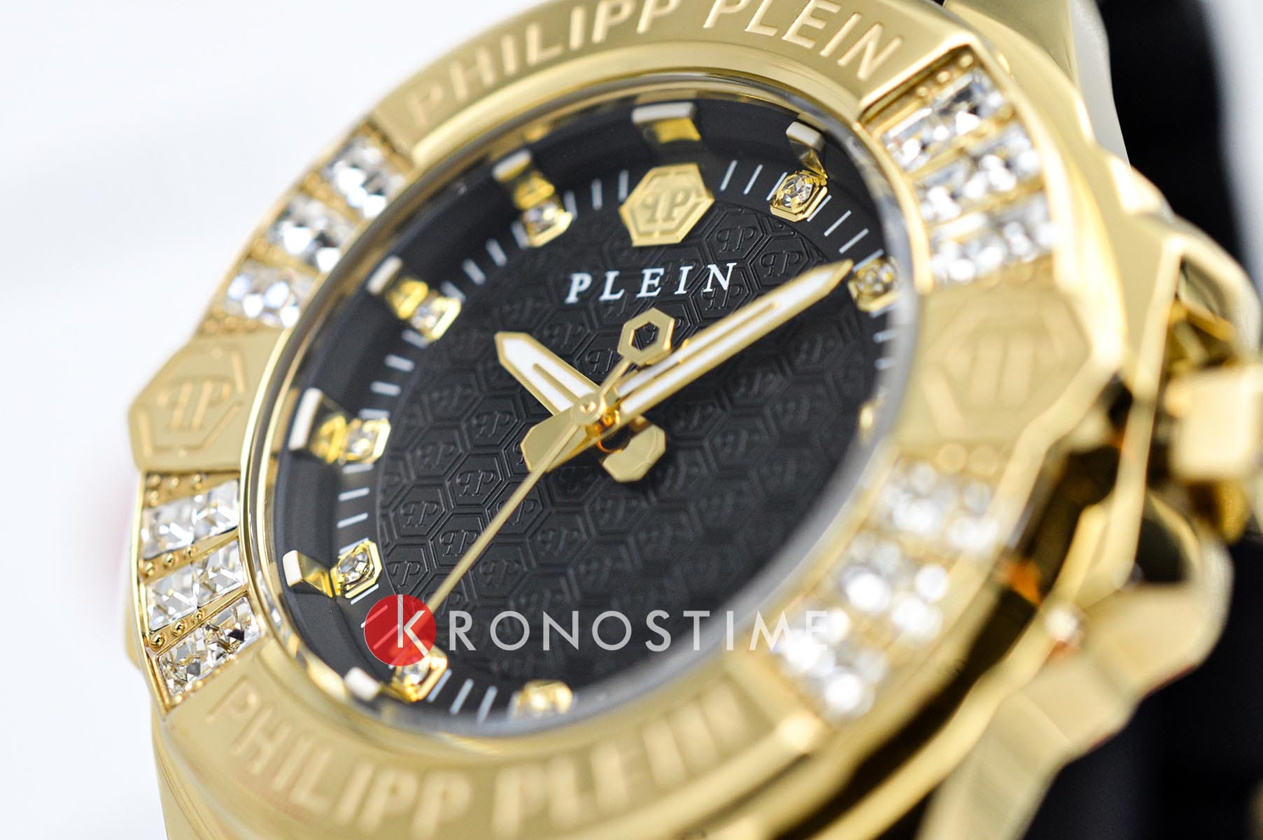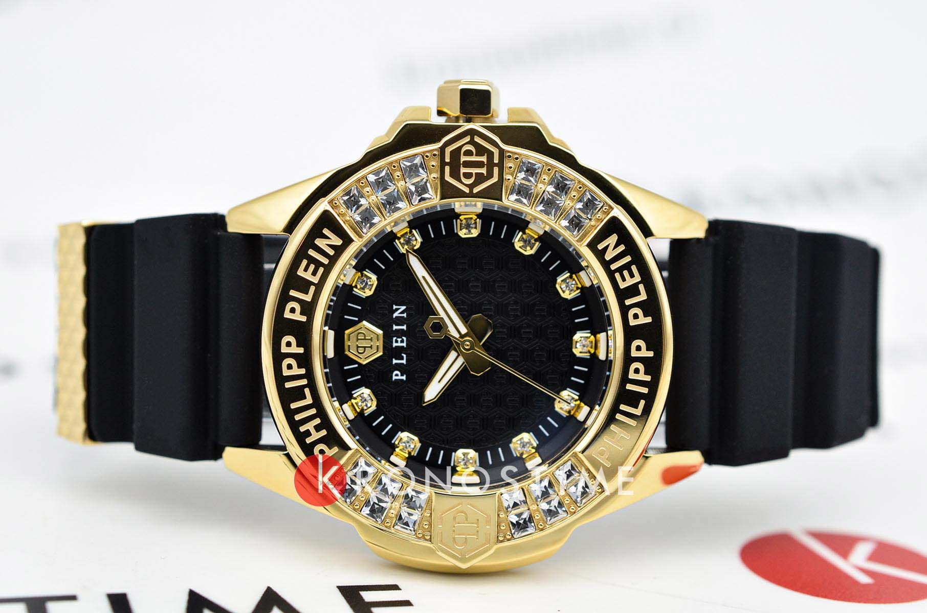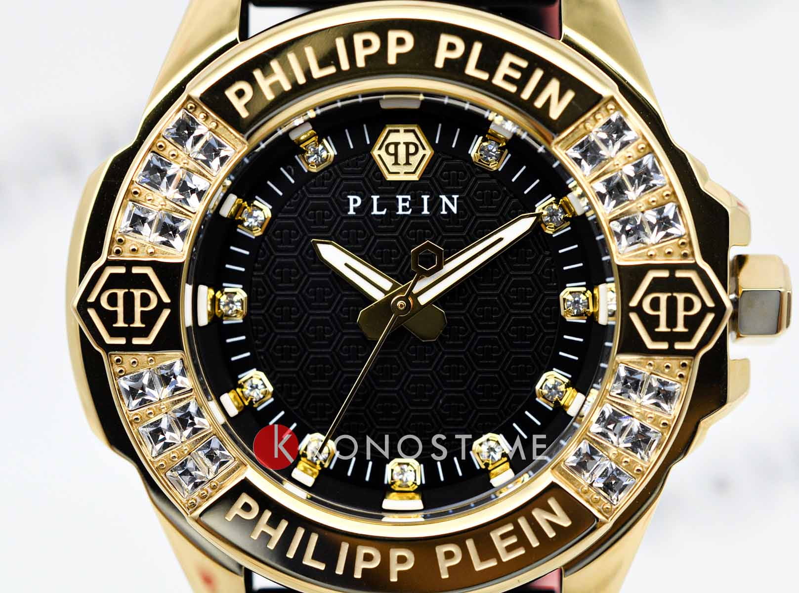 Philipp Plein Plein Majesty PWOFA0225 - дерзкое заявление любви к роскоши и бунтарскому стилю. Диаметр круглого корпуса из прочной нержавеющей стали с PVD-покрытиемPVDУльтратонкое покрытие наносится в технике вакуумного напыления, сочетает в себе нитрид титана особой прочности со слоем золота или оксида хрома. Несёт в себе декоративную или защитную функцию. равен 38 мм. Силиконовый ремешок на стандартной застёжке обеспечивает надёжную фиксацию и комфортное ношение. Метки в виде кристаллов Preciosa. Минеральное стеклоМинеральное стеклоМинеральное стекло представляет собой искусственно выращенный минерал кварца. Такое стекло отличается особой устойчивостью к повреждениям и царапинам. Уступает по некоторым качествам сапфировому стеклу. защищает циферблат от царапин. Люминесцентное покрытиеЛюминесцентное покрытиеПозволяет считывать показания времени в темноте. Производители наносят на стрелки, часовые индексы, безель или поверхность циферблата светонакопительный состав, дающий холодное свечение. стрелок и меток позволит следить за временем даже в полной темноте. БезельБезельВнешний ободок, закрепляющий стекло. В спортивных часах так называется поворотное кольцо с делениями на циферблате, выполняет роль таймера – замеряет отрезки времени на шкале. Неподвижный безель – элемент декора. Однонаправленно вращающийся безель на дайверских часах позволяет фиксировать моменты погружения и выныривания на поверхность. инкрустирован кристаллами. Влагозащита: 50 метров, позволит защитить корпус от случайных брызг или капель дождя. Идеальный аксессуар для тех, кто ценит индивидуальность и не боится выделяться из толпы.