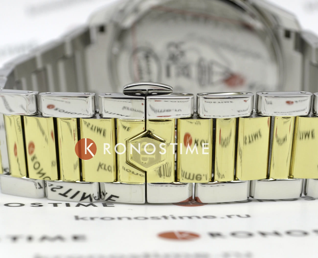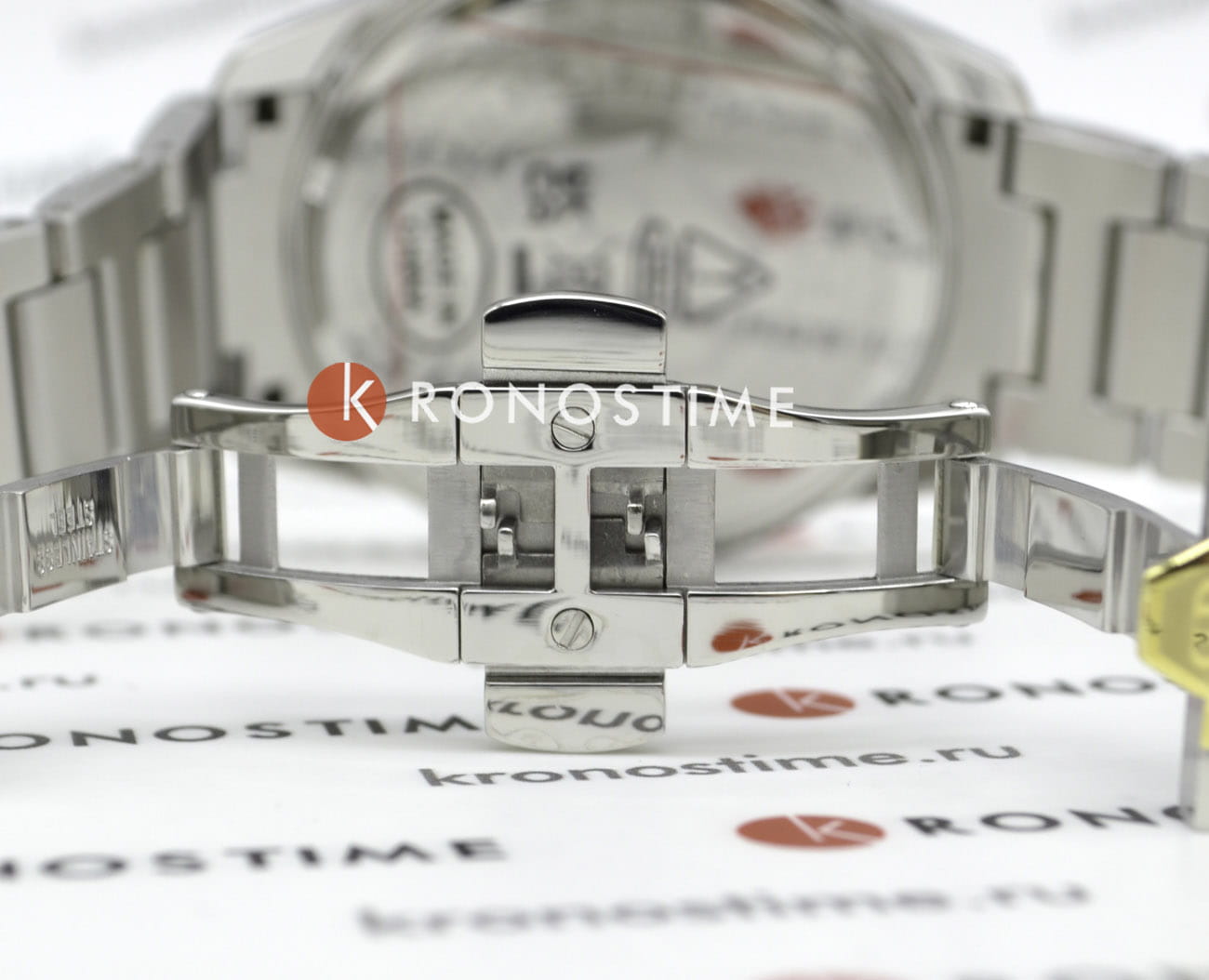 БезельБезельВнешний ободок, закрепляющий стекло. В спортивных часах так называется поворотное кольцо с делениями на циферблате, выполняет роль таймера – замеряет отрезки времени на шкале. Неподвижный безель – элемент декора. Однонаправленно вращающийся безель на дайверских часах позволяет фиксировать моменты погружения и выныривания на поверхность. с IP-покрытиемIP-покрытиеМетод ионного напыления. Демонстрирует повышенную устойчивость к истиранию, окислению и химическим веществам. Под воздействием высокого давления и температуры около 1500°C молекулы металла надёжно соединяются с частицами корпуса часов. добавляет часам дополнительную прочность и элегантность. Стальной браслет на застёжке-бабочке с кнопкамиЗастёжка "бабочка"Такой вид застёжки дополняется предохранителями, помогающими избежать случайного раскрытия браслета. Обладают изящным исполнением.  не только выглядит стильно, но и обеспечивает удобство при ношении. Частичное IP-покрытиеIP-покрытиеМетод ионного напыления. Демонстрирует повышенную устойчивость к истиранию, окислению и химическим веществам. Под воздействием высокого давления и температуры около 1500°C молекулы металла надёжно соединяются с частицами корпуса часов. браслета подчеркивает его утонченность и делает часы еще более привлекательными.