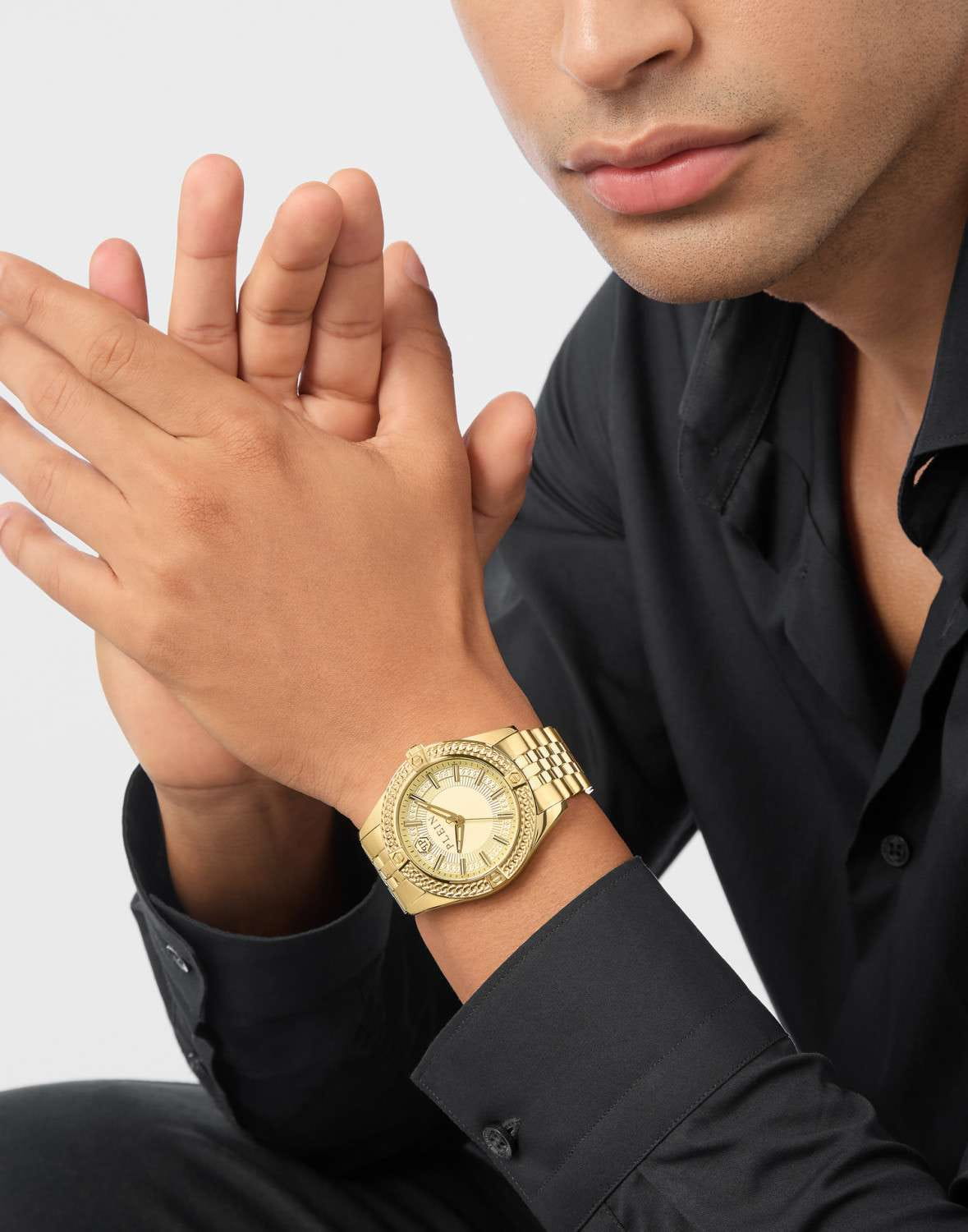 Philipp Plein Plein Icon Chain PWZFA0325 - часы в современном дизайне несомненно добавят вам выразительности и станут главным акцентом вашего стильного образа. Мужские кварцевые часы с высокой точностью. Круглый стальной корпус с PVD-покрытиемPVDУльтратонкое покрытие наносится в технике вакуумного напыления, сочетает в себе нитрид титана особой прочности со слоем золота или оксида хрома. Несёт в себе декоративную или защитную функцию. золотистого цвета, диаметром 43 мм. Циферблат декорирован логотипом бренда в положении 12 часов, метки в виде штрихов. Минеральное стеклоМинеральное стеклоМинеральное стекло представляет собой искусственно выращенный минерал кварца. Такое стекло отличается особой устойчивостью к повреждениям и царапинам. Уступает по некоторым качествам сапфировому стеклу. защищает циферблат от царапин. Люминесцентное покрытиеЛюминесцентное покрытиеПозволяет считывать показания времени в темноте. Производители наносят на стрелки, часовые индексы, безель или поверхность циферблата светонакопительный состав, дающий холодное свечение. стрелок позволит следить за временем даже в полной темноте. Стальной браслет с PVD-покрытиемPVDУльтратонкое покрытие наносится в технике вакуумного напыления, сочетает в себе нитрид титана особой прочности со слоем золота или оксида хрома. Несёт в себе декоративную или защитную функцию. на застёжке-бабочке с кнопкамиЗастёжка "бабочка"Такой вид застёжки дополняется предохранителями, помогающими избежать случайного раскрытия браслета. Обладают изящным исполнением. , обеспечивает комфортное ношение. Граненая заводная головка. Влагозащита: 50 метров, позволит защитить корпус от случайных брызг или капель дождя. Идеальный аксессуар для тех, кто ценит индивидуальность и не боится выделяться из толпы.