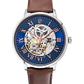Мужские механические часы с автоподзаводом Pierre Lannier Automatic 322B164. Минеральное стеклоМинеральное стеклоМинеральное стекло представляет собой искусственно выращенный минерал кварца. Такое стекло отличается особой устойчивостью к повреждениям и царапинам. Уступает по некоторым качествам сапфировому стеклу. устойчивое к мелким механическим повреждениям. Скелетонизированный циферблат. Центральные часовая, минутная и секундная стрелки. Стрелки с люминесцентным покрытиемЛюминесцентное покрытиеПозволяет считывать показания времени в темноте. Производители наносят на стрелки, часовые индексы, безель или поверхность циферблата светонакопительный состав, дающий холодное свечение.. Корпус выполнен из нержавеющей стали. Диаметр корпуса составляет 42 мм, толщина 13.5 мм. Кожаный ремешок черного цвета.Водостойкость WR 50.