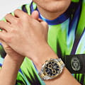 Немецкие мужские кварцевые часы-хронографХронографФункция позволяет измерять отрезки времени с особой точностью: часы, минуты, секунды. Верным признаком хронографа является наличие на циферблате 3 дополнительных окошек-счётчиков. с секундомеромСекундомерСекундоме́р — прибор, способный измерять интервалы времени с точностью до долей секунды. Plein Sport Wildcat PSGBA1223, кварцевый механизм с высокой точностью. Класс водозащиты: 50 метров, позволит защитить корпус от случайных брызг или капель дождя. Корпус часов изготовлен из стали. Стальной браслет на раскладной застёжкеРаскладная застёжкаТакой тип застёжки используется только на браслетах из металла. Она никогда не раскрывается полностью, происходит разделение на 2 и более частей. Раскладывающая застёжка снизит вероятность потери часов к минимуму. с IP-покрытиемIP-покрытиеМетод ионного напыления. Демонстрирует повышенную устойчивость к истиранию, окислению и химическим веществам. Под воздействием высокого давления и температуры около 1500°C молекулы металла надёжно соединяются с частицами корпуса часов..Стрелки и метки с люминесцентным покрытиемЛюминесцентное покрытиеПозволяет считывать показания времени в темноте. Производители наносят на стрелки, часовые индексы, безель или поверхность циферблата светонакопительный состав, дающий холодное свечение.. БезельБезельВнешний ободок, закрепляющий стекло. В спортивных часах так называется поворотное кольцо с делениями на циферблате, выполняет роль таймера – замеряет отрезки времени на шкале. Неподвижный безель – элемент декора. Однонаправленно вращающийся безель на дайверских часах позволяет фиксировать моменты погружения и выныривания на поверхность. с IP-покрытиемIP-покрытиеМетод ионного напыления. Демонстрирует повышенную устойчивость к истиранию, окислению и химическим веществам. Под воздействием высокого давления и температуры около 1500°C молекулы металла надёжно соединяются с частицами корпуса часов.. Окошко даты находится в положении между 4 и 5 часов.