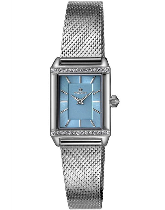 Poljot VX50.1841320 — утончённые женские кварцевые часы, вдохновлённые эстетикой ретро-гламура и современной сдержанностью. Прямоугольный корпус из нержавеющей стали с аккуратной инкрустацией придаёт модели изысканный блеск, а нежный бирюзовый циферблат создаёт мягкий контраст и ощущение воздушности. Минималистичные стрелки и метки подчёркивают лаконичность дизайна, сохраняя при этом утончённую женственность. Точный японский механизм гарантирует надёжную работу, а прочное минеральное стеклоМинеральное стеклоМинеральное стекло представляет собой искусственно выращенный минерал кварца. Такое стекло отличается особой устойчивостью к повреждениям и царапинам. Уступает по некоторым качествам сапфировому стеклу. защищает поверхность от повреждений. Металлический миланский браслет на раскладном замкеРаскладной замокДанный вариант застежки используется только на часах с металлическим браслетом. Отличительная особенность такого крепления в том, что длина браслета становится универсальной и вы можете самостоятельно отрегулировать нужный вам размер – застежка просто двигается по браслету часов. комфортно облегает запястье, добавляя образу лёгкости и элегантного сияния. Poljot — это украшение и аксессуар в одном, идеальный выбор для женщины, ценящей благородный стиль и безупречное чувство вкуса.
