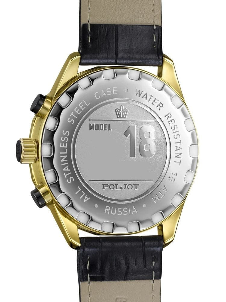 Poljot 6S21.186254 — яркие мужские часы с выразительным спортивным характером и акцентом на функциональность. Корпус из нержавеющей стали с PVD-покрытиемPVDУльтратонкое покрытие наносится в технике вакуумного напыления, сочетает в себе нитрид титана особой прочности со слоем золота или оксида хрома. Несёт в себе декоративную или защитную функцию. придаёт модели надёжность и солидность, а насыщенный циферблат с контрастными счётчиками хронографаХронографФункция позволяет измерять отрезки времени с особой точностью: часы, минуты, секунды. Верным признаком хронографа является наличие на циферблате 3 дополнительных окошек-счётчиков. создаёт динамичный и энергичный облик. БезельБезельВнешний ободок, закрепляющий стекло. В спортивных часах так называется поворотное кольцо с делениями на циферблате, выполняет роль таймера – замеряет отрезки времени на шкале. Неподвижный безель – элемент декора. Однонаправленно вращающийся безель на дайверских часах позволяет фиксировать моменты погружения и выныривания на поверхность. с PVD-покрытиемPVDУльтратонкое покрытие наносится в технике вакуумного напыления, сочетает в себе нитрид титана особой прочности со слоем золота или оксида хрома. Несёт в себе декоративную или защитную функцию.. Широкие стрелки и метки с люминесцентным покрытиемЛюминесцентное покрытиеПозволяет считывать показания времени в темноте. Производители наносят на стрелки, часовые индексы, безель или поверхность циферблата светонакопительный состав, дающий холодное свечение. обеспечивают отличную читаемость в любых условиях, а внешний обод с минутной шкалой подчёркивает спортивный стиль. Окно даты добавляет практичности. Прочное минеральное стеклоМинеральное стеклоМинеральное стекло представляет собой искусственно выращенный минерал кварца. Такое стекло отличается особой устойчивостью к повреждениям и царапинам. Уступает по некоторым качествам сапфировому стеклу. надёжно защищает циферблат от повреждений, а ремешок из натуральной кожи гармонично дополняет контрастную цветовую палитру. Poljot — это смелое сочетание спортивной энергии, точности и современного дизайна для активного и уверенного мужчины.