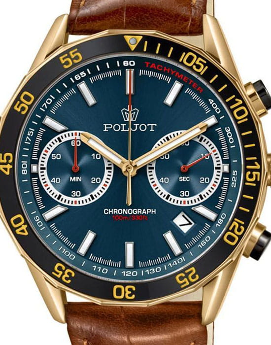 Poljot 6S21.186258 — яркие мужские часы с выразительным спортивным характером и акцентом на функциональность. Корпус из нержавеющей стали с PVD-покрытиемPVDУльтратонкое покрытие наносится в технике вакуумного напыления, сочетает в себе нитрид титана особой прочности со слоем золота или оксида хрома. Несёт в себе декоративную или защитную функцию. придаёт модели надёжность и солидность, а насыщенный циферблат с контрастными счётчиками хронографаХронографФункция позволяет измерять отрезки времени с особой точностью: часы, минуты, секунды. Верным признаком хронографа является наличие на циферблате 3 дополнительных окошек-счётчиков. создаёт динамичный и энергичный облик. БезельБезельВнешний ободок, закрепляющий стекло. В спортивных часах так называется поворотное кольцо с делениями на циферблате, выполняет роль таймера – замеряет отрезки времени на шкале. Неподвижный безель – элемент декора. Однонаправленно вращающийся безель на дайверских часах позволяет фиксировать моменты погружения и выныривания на поверхность. с PVD-покрытиемPVDУльтратонкое покрытие наносится в технике вакуумного напыления, сочетает в себе нитрид титана особой прочности со слоем золота или оксида хрома. Несёт в себе декоративную или защитную функцию.. Широкие стрелки и метки с люминесцентным покрытиемЛюминесцентное покрытиеПозволяет считывать показания времени в темноте. Производители наносят на стрелки, часовые индексы, безель или поверхность циферблата светонакопительный состав, дающий холодное свечение. обеспечивают отличную читаемость в любых условиях, а внешний обод с минутной шкалой подчёркивает спортивный стиль. Окно даты добавляет практичности. Прочное минеральное стеклоМинеральное стеклоМинеральное стекло представляет собой искусственно выращенный минерал кварца. Такое стекло отличается особой устойчивостью к повреждениям и царапинам. Уступает по некоторым качествам сапфировому стеклу. надёжно защищает циферблат от повреждений, а ремешок из натуральной кожи гармонично дополняет контрастную цветовую палитру. Poljot — это смелое сочетание спортивной энергии, точности и современного дизайна для активного и уверенного мужчины.